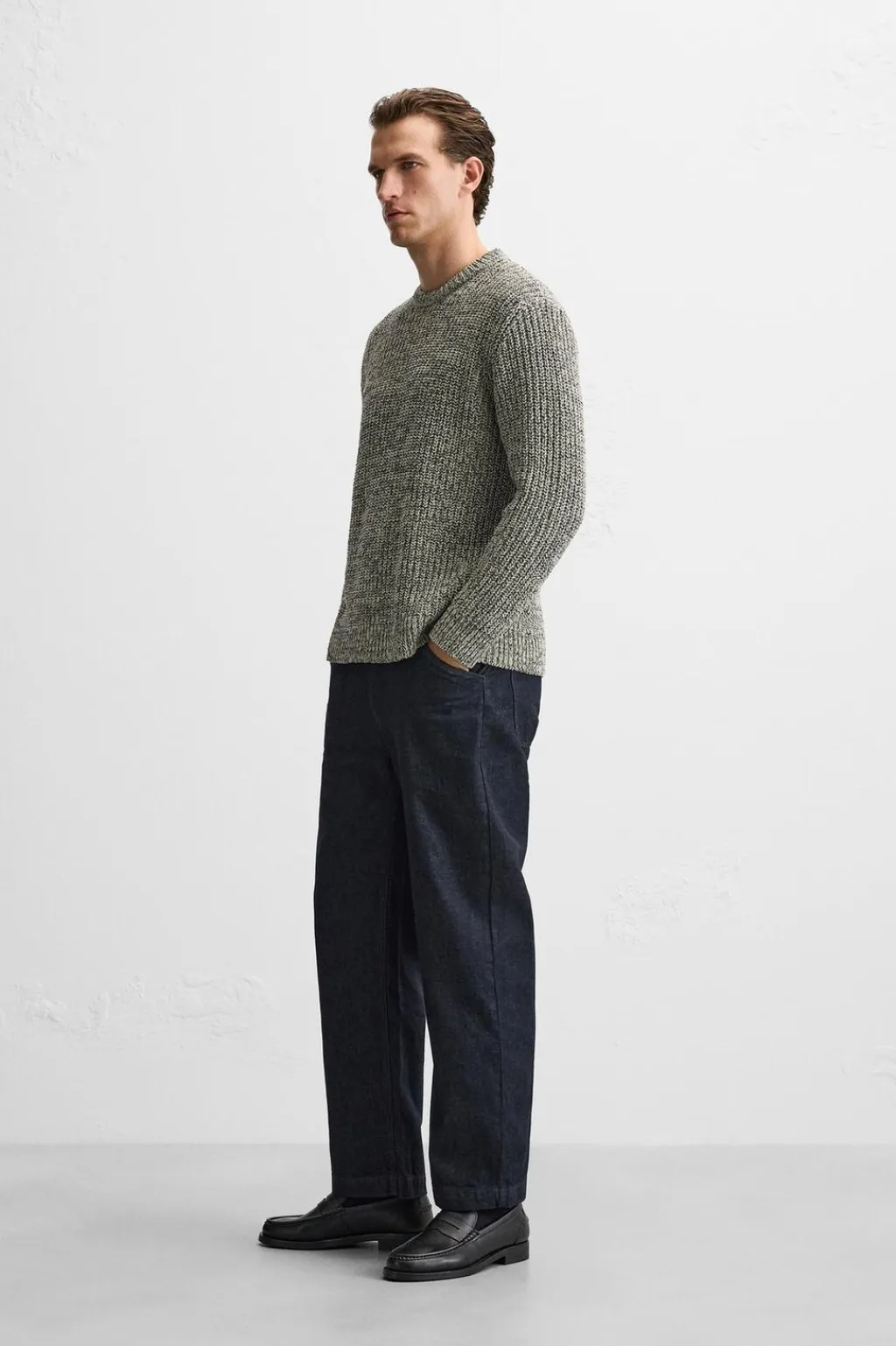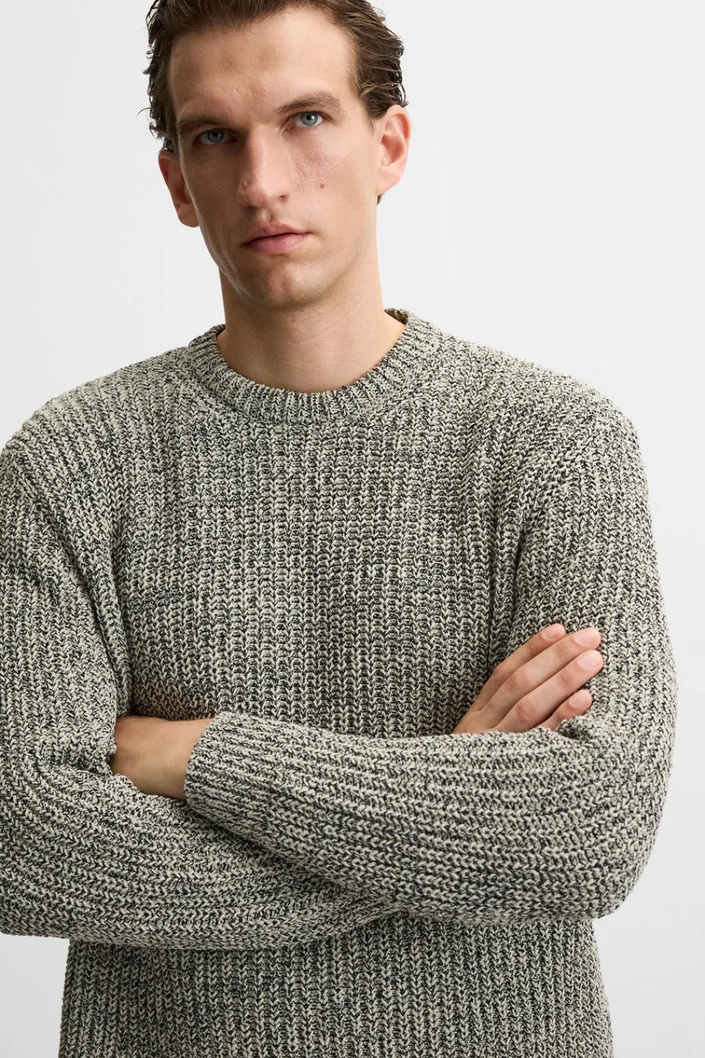 Jersey regular fit tejido en hilatura con algodón. Cuello redondo y manga larga. Acabados en rib.
