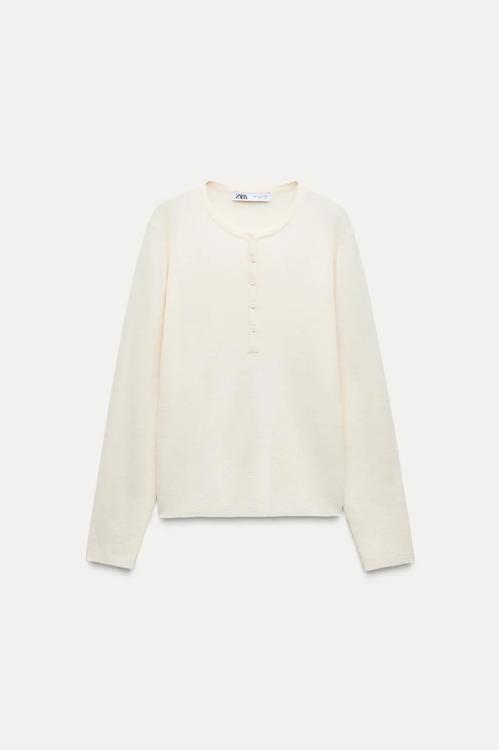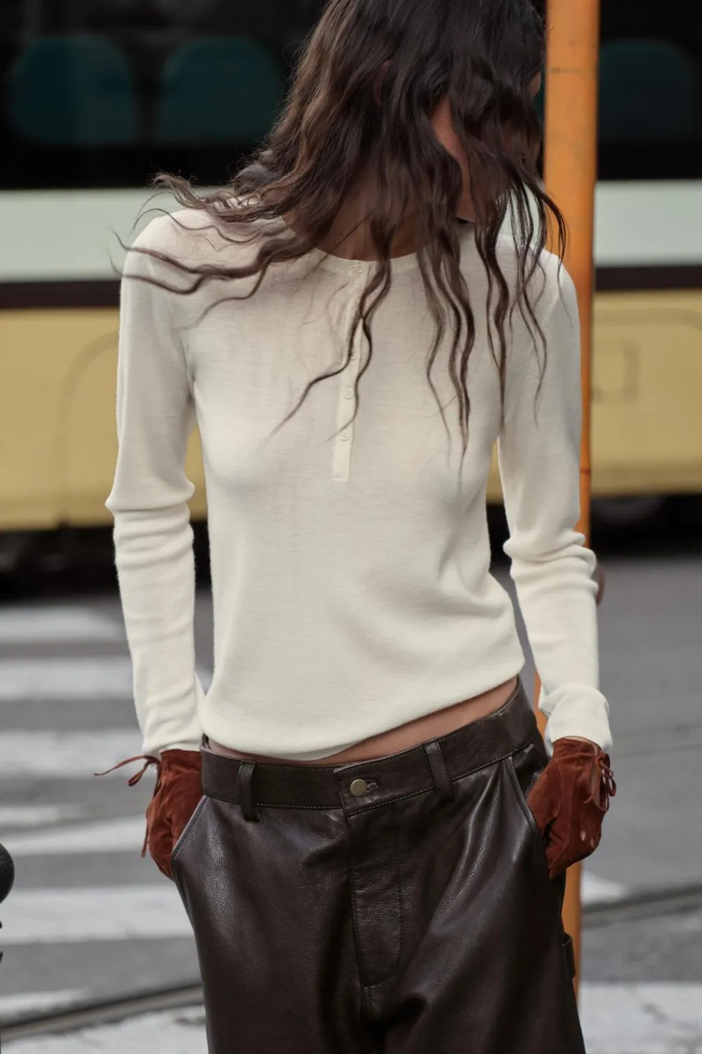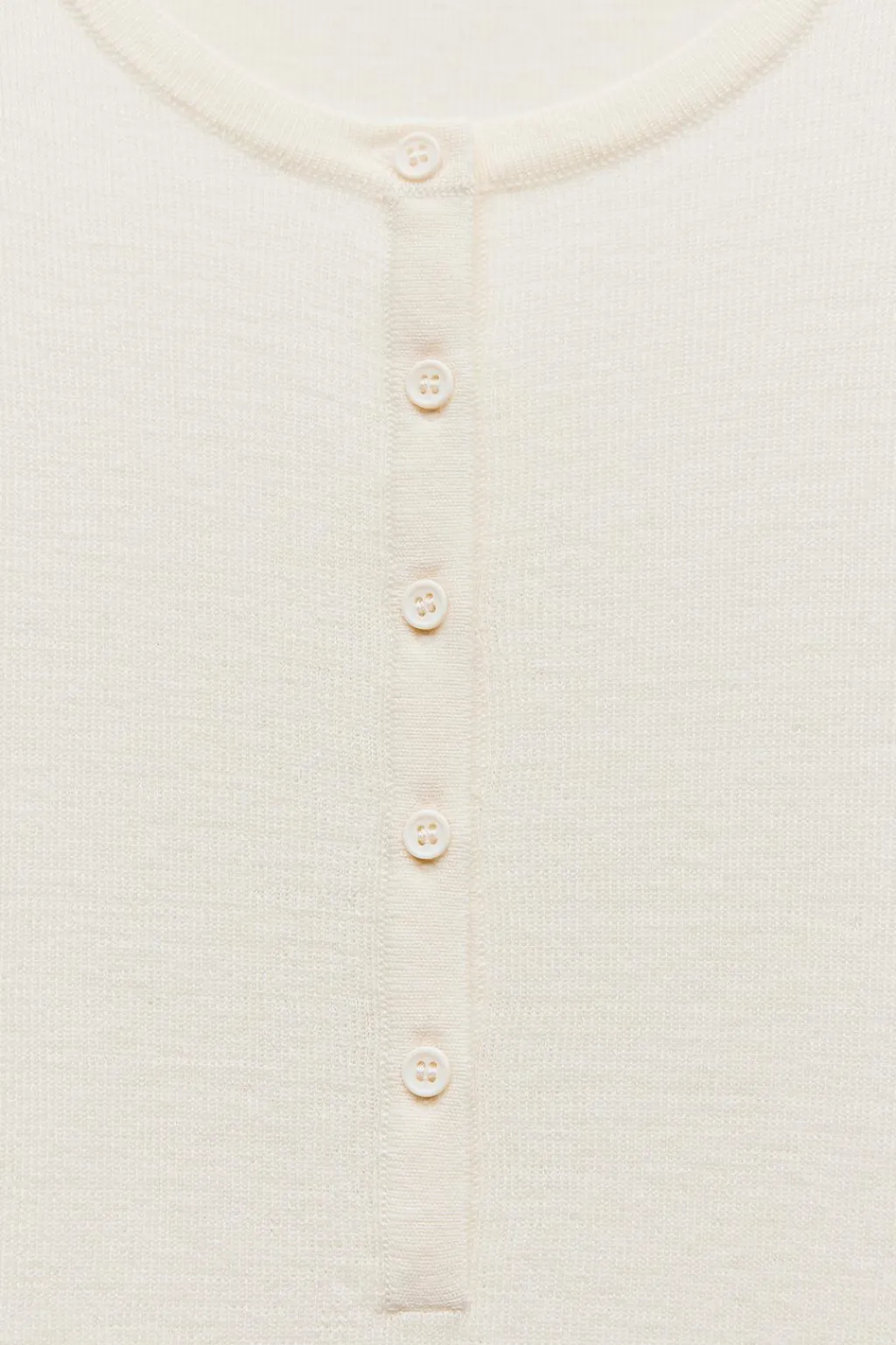 Jersey confeccionado con lana. Cuello redondo y manga larga. Botones delanteros.