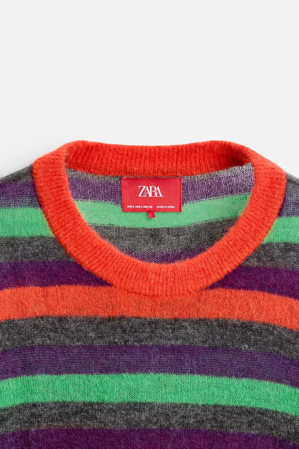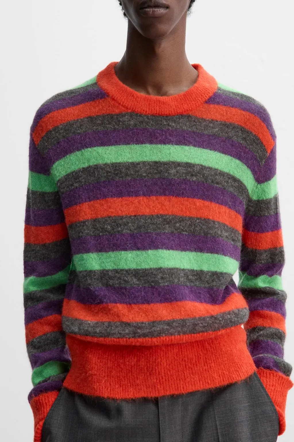 Jersey cropped fit tejido en hilatura con lana. Cuello redondo y manga larga. Acabados en rib.
