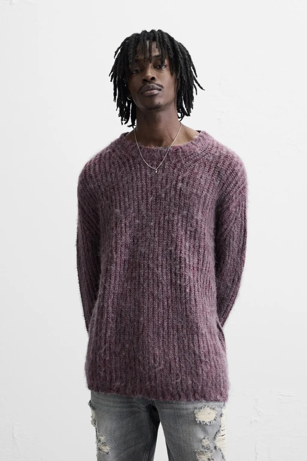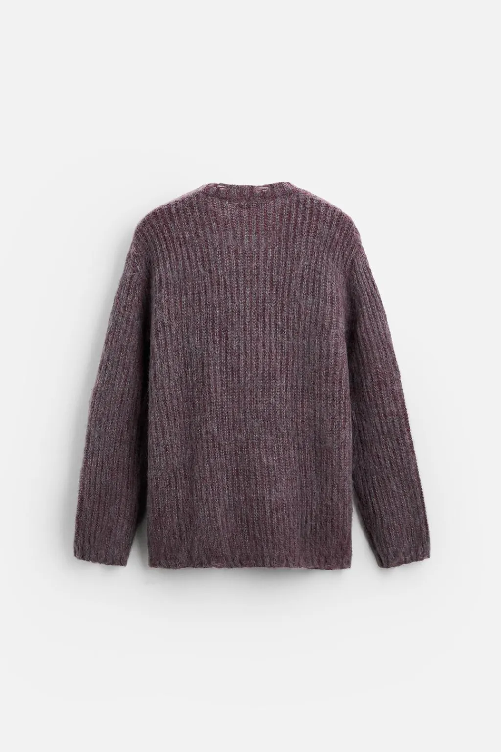 Jersey relaxed fit tejido en hilatura con acabado cepillado. Cuello redondo y manga larga. Acabados en rib.