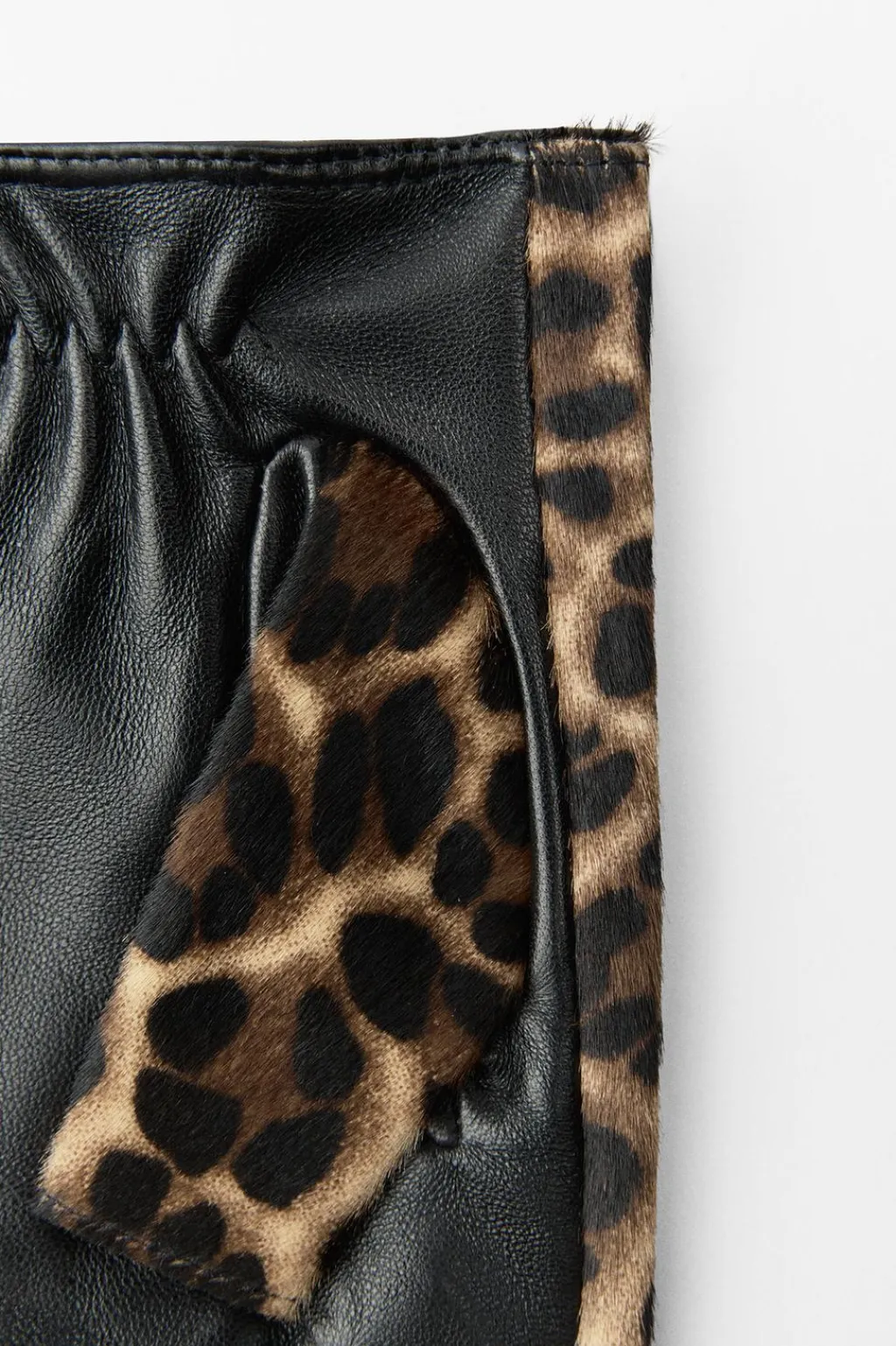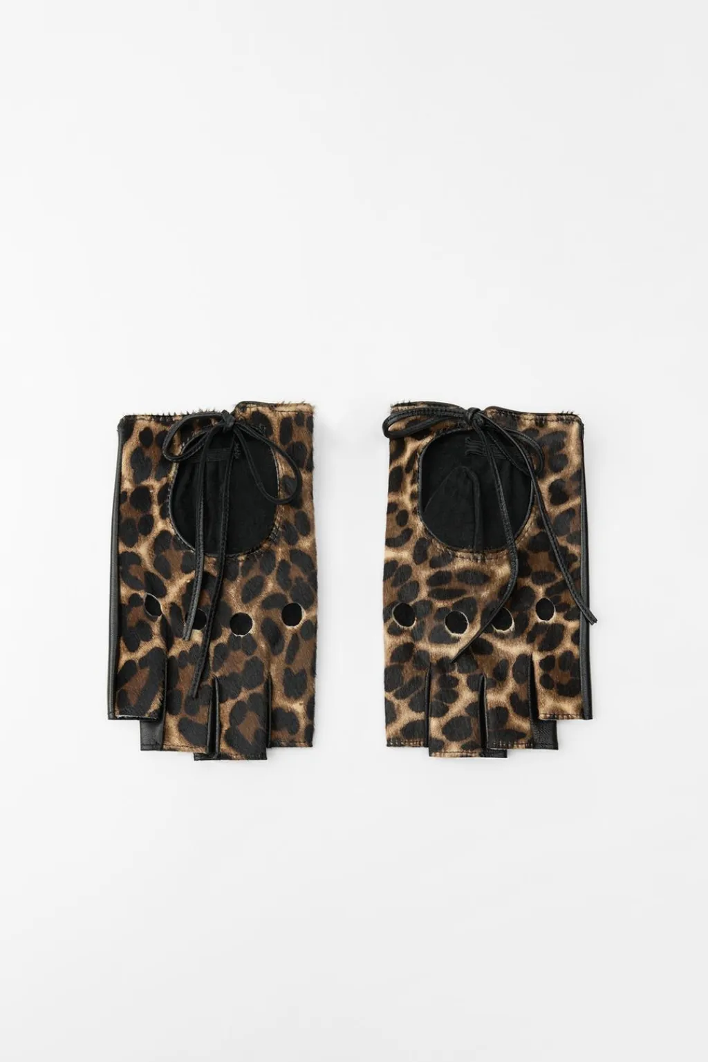 Mitones estampados realizados en piel 100%. Detalle de tejido perforado. Cierre con lazada.