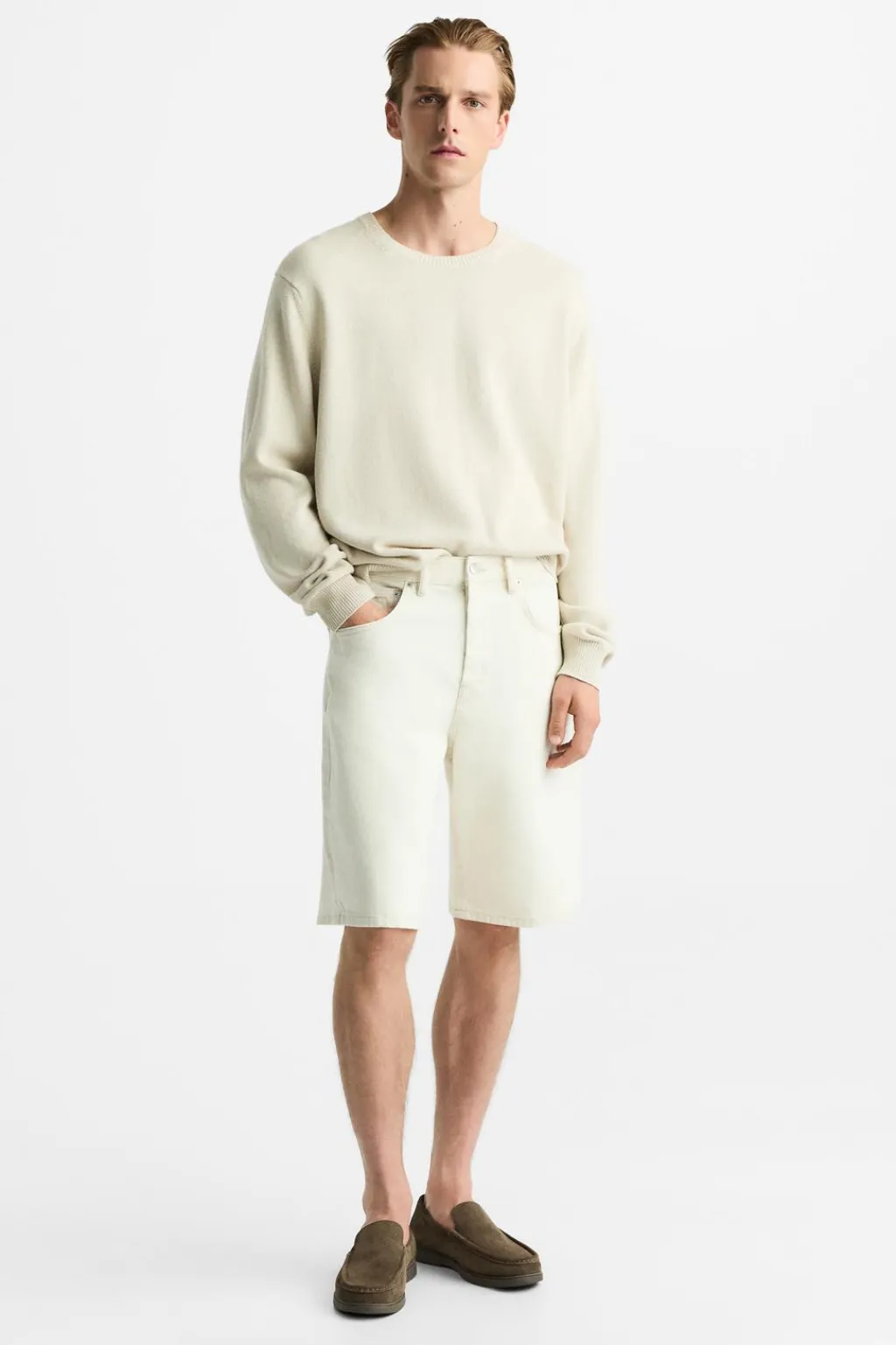 Mocasín casual. Parte superior fabricada en piel con acabado serraje. Corte liso con detalle de bordón. Horma redonda. Piso a tono.