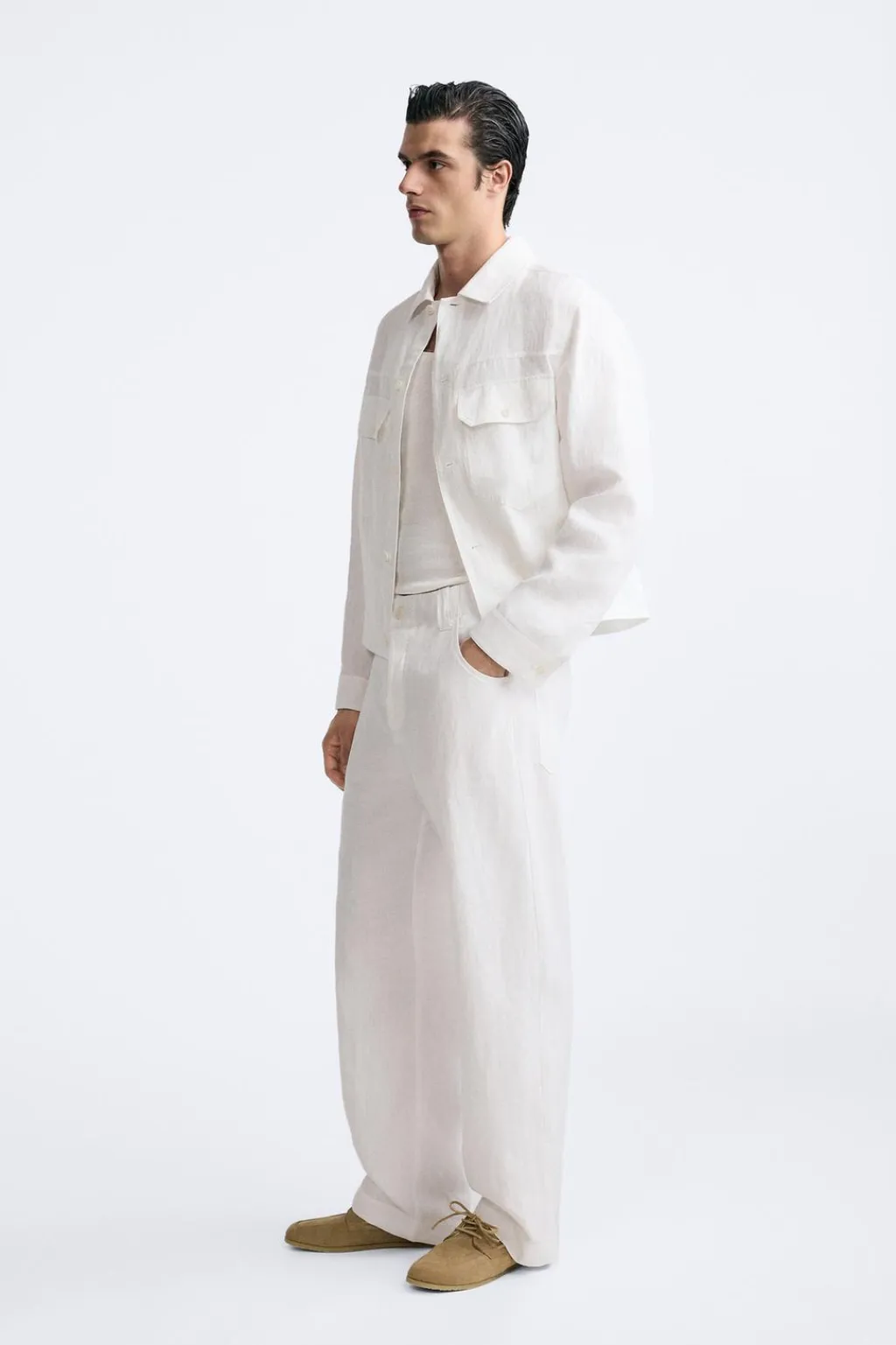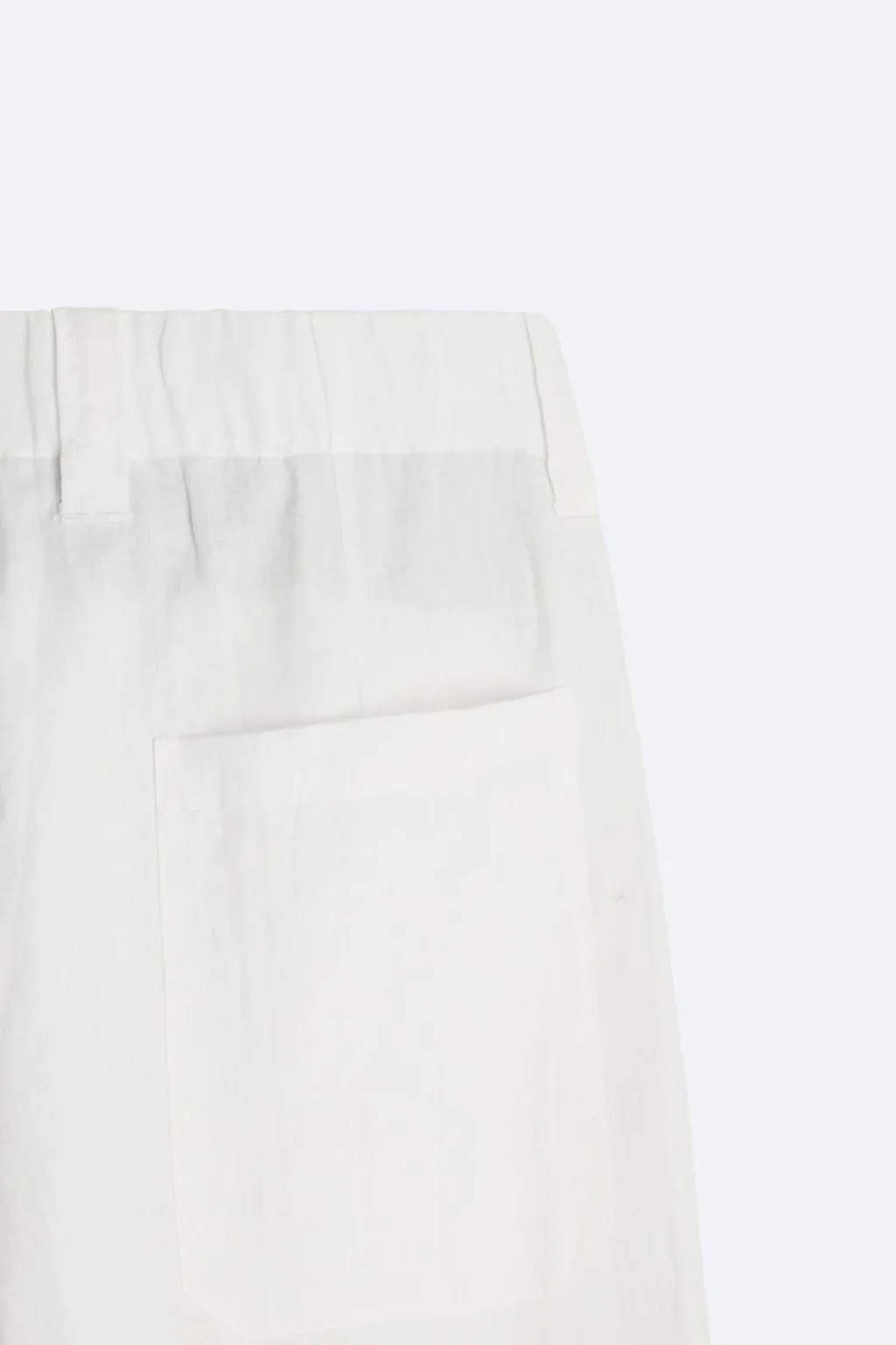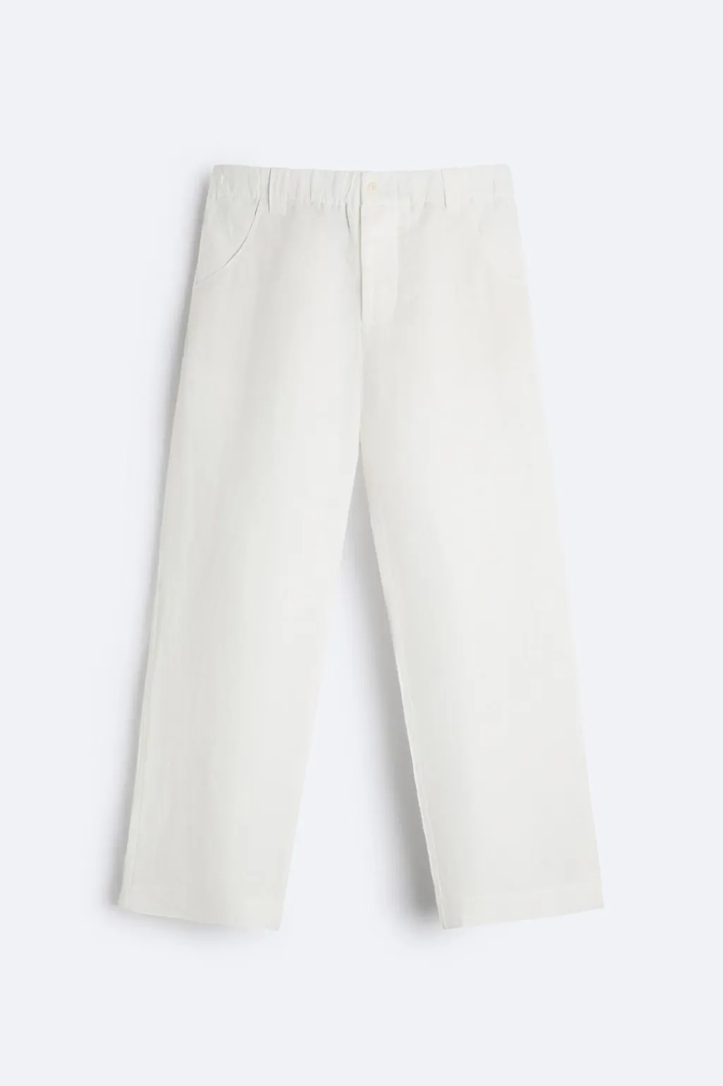 Pantalón relaxed fit confeccionado en tejido de cáñamo. Cintura elástica ajustable con cordón interior.Bolsillos frontales y detalle de bolsillos traseros de plastrón. Cierre frontal de botonadura
