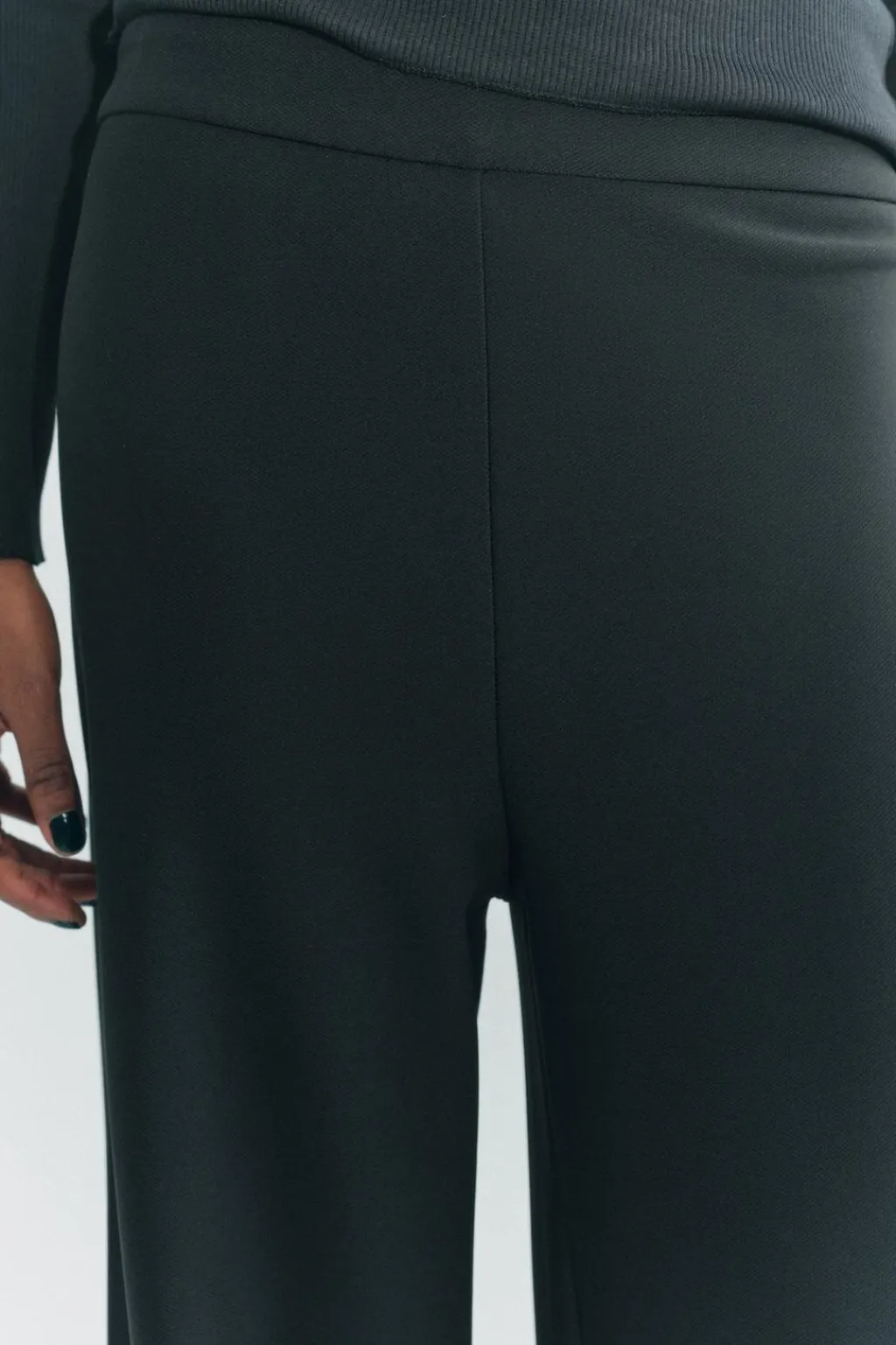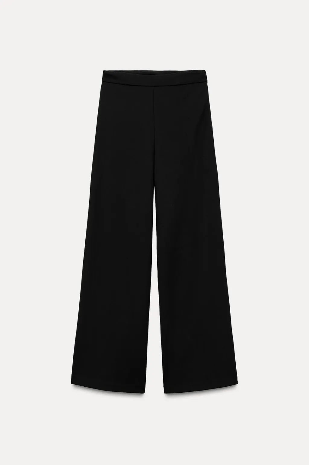 Pantalón de tiro alto y cintura con elástico. Pierna ancha.