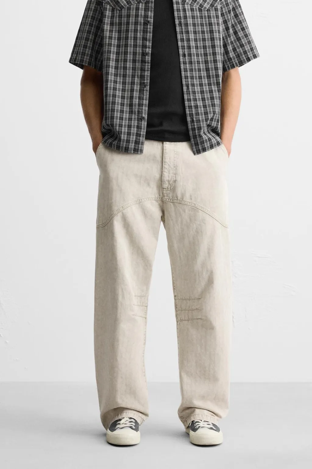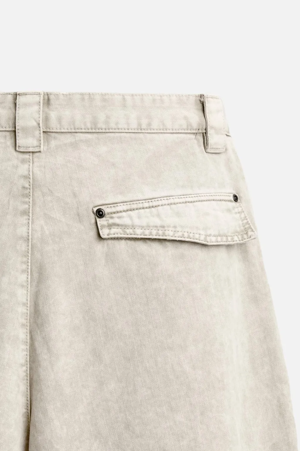 Pantalón relaxed fit confeccionado en tejido de algodón. Bolsillos delanteros y detalle traseros de solapa. Efecto lavado. Cierre frontal con cremallera y botón.