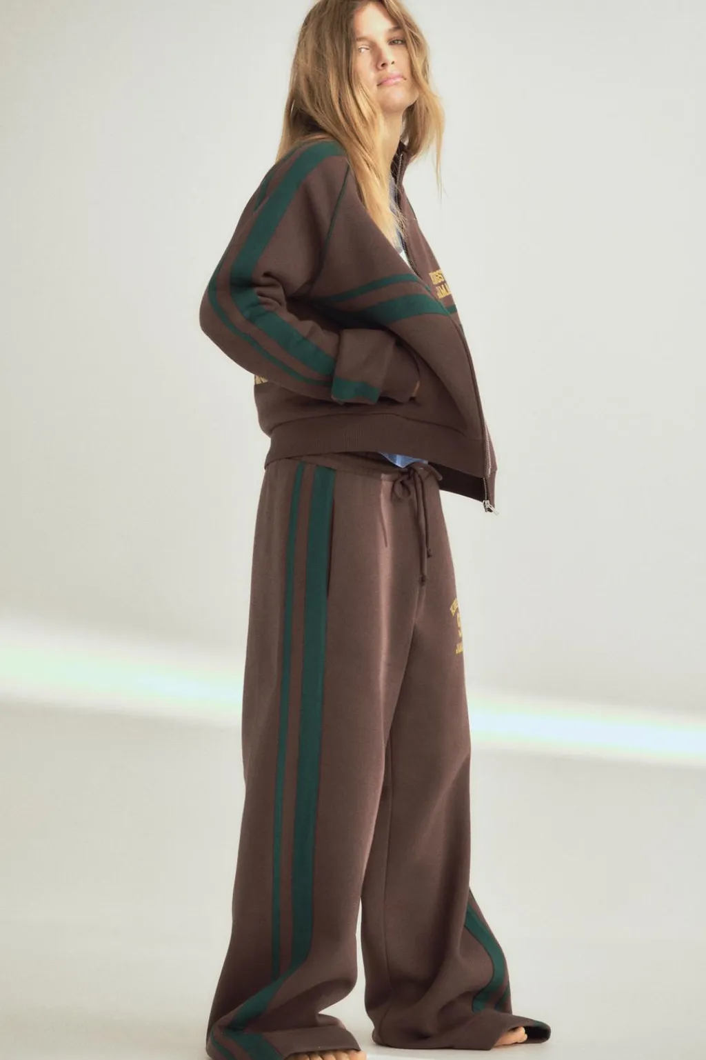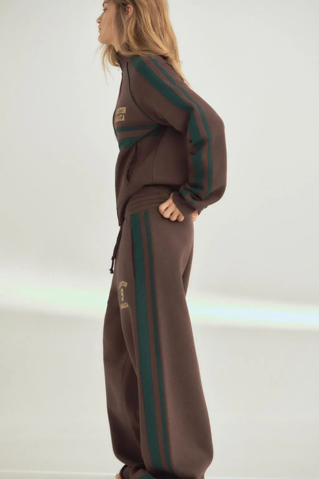 Pantalón de tiro alto con cintura elástica ajustable con cordones. Bolsillos laterales. Detsalle de bandas combinadas. Texto y número en delantero combinado a contraste.
