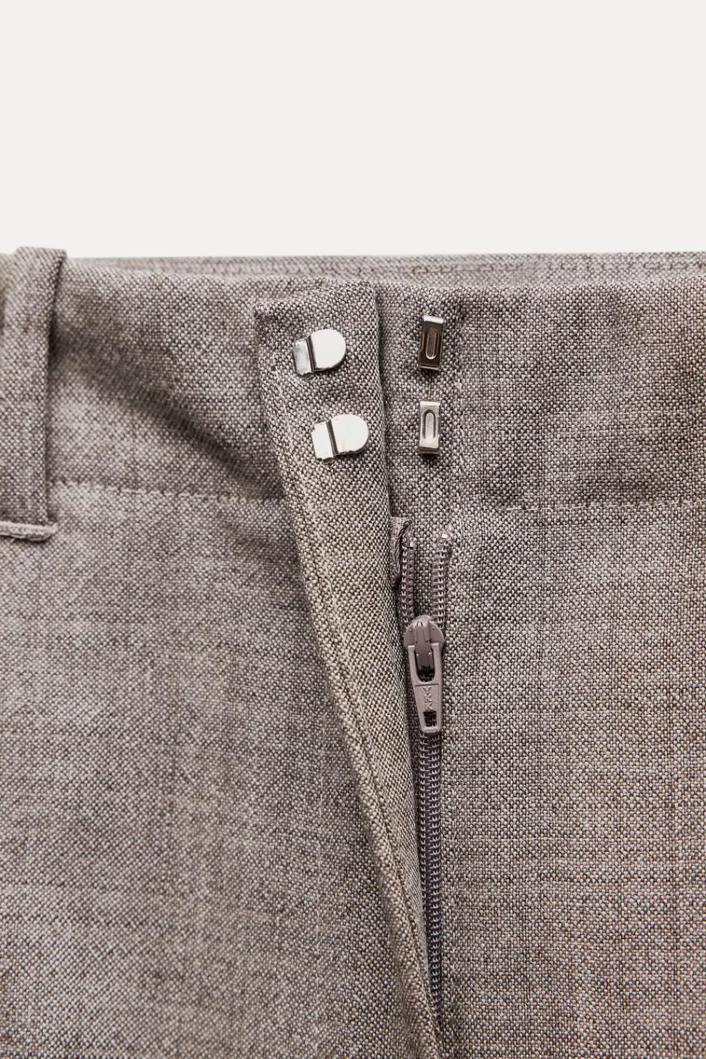Pantalón confeccionado en hilatura de lana 100%. Tiro medio y cintura con trabillas. Pierna recta. Cierre frontal con cremallera, botón y gancho metálico.