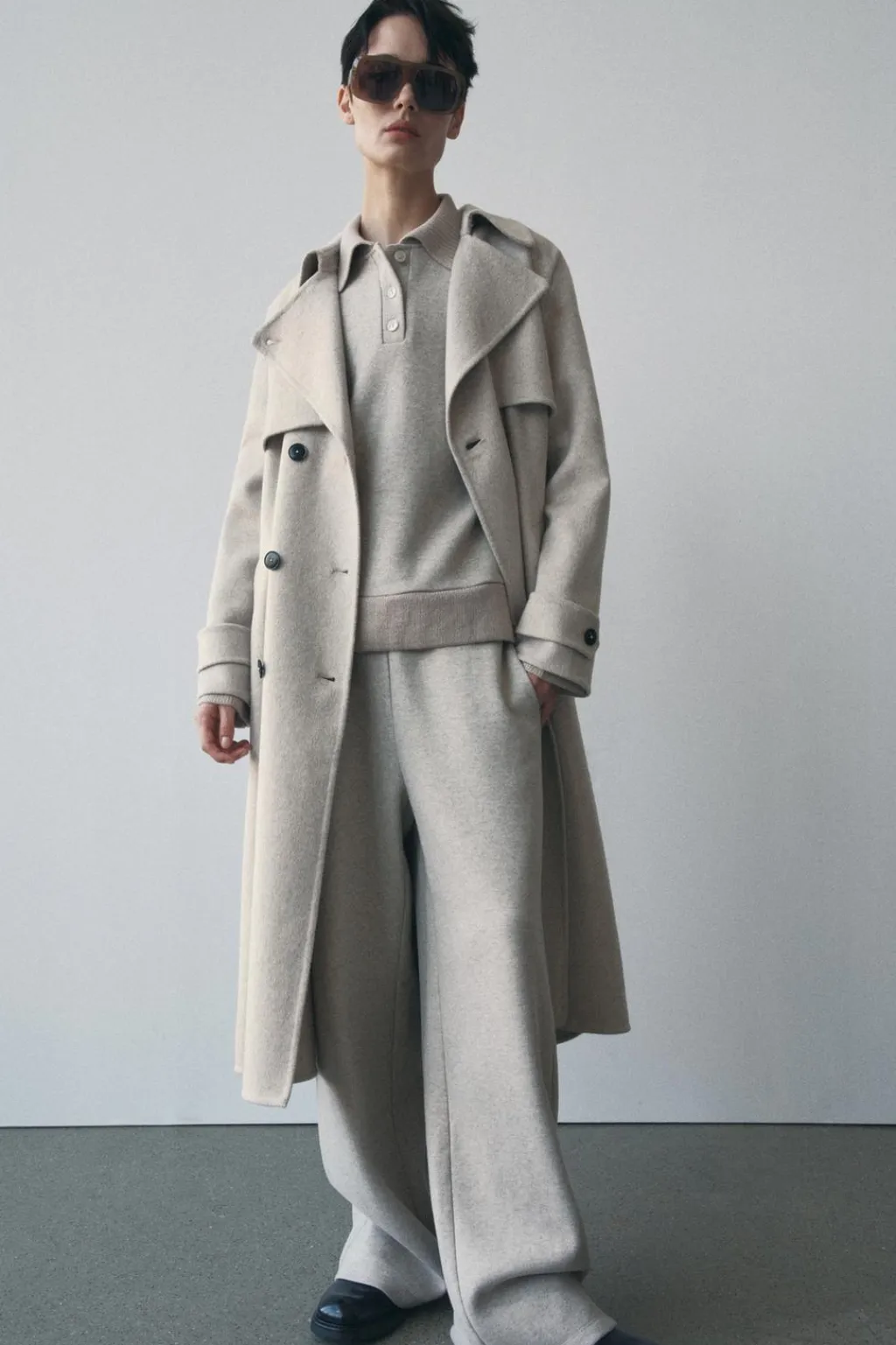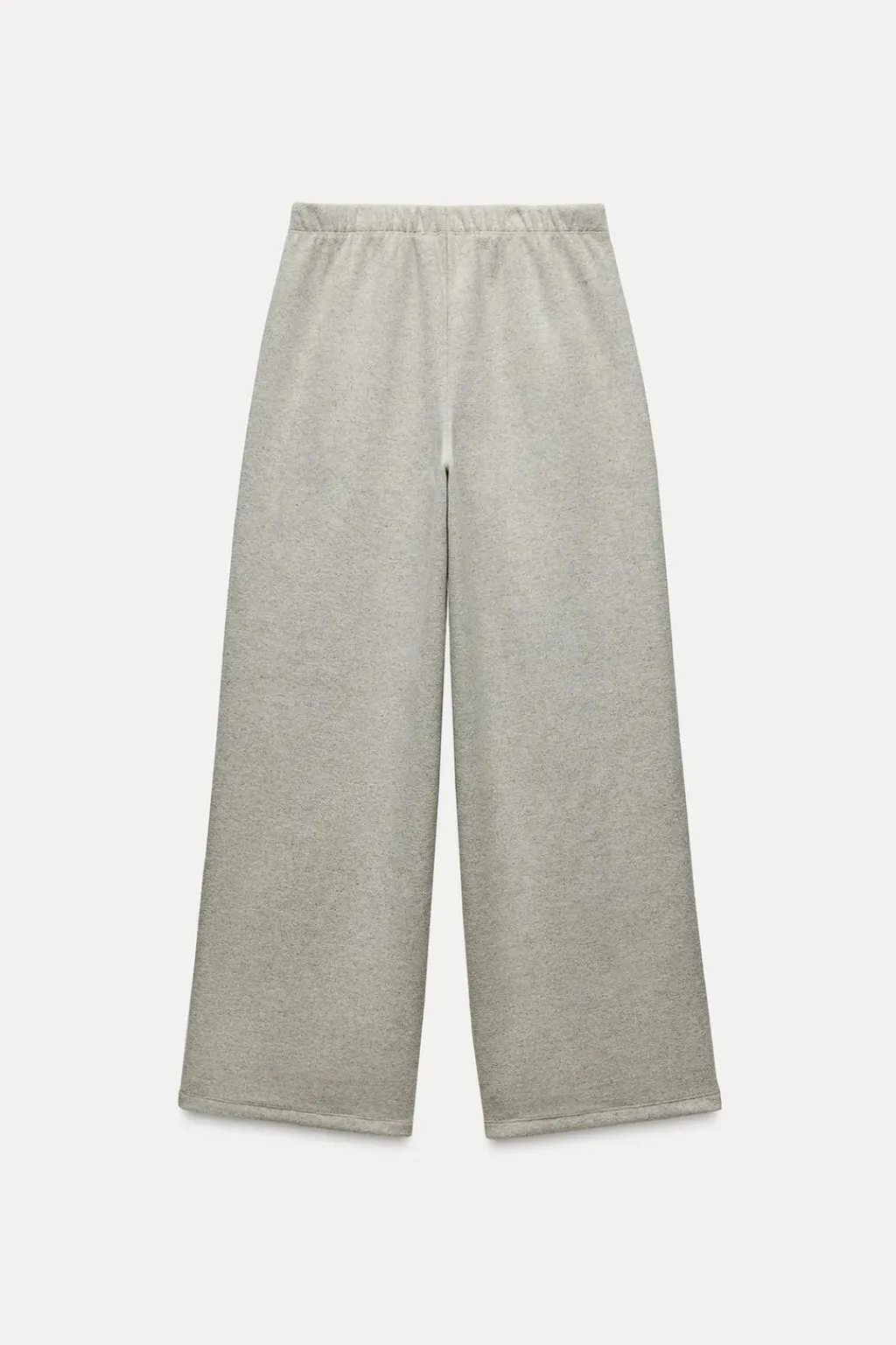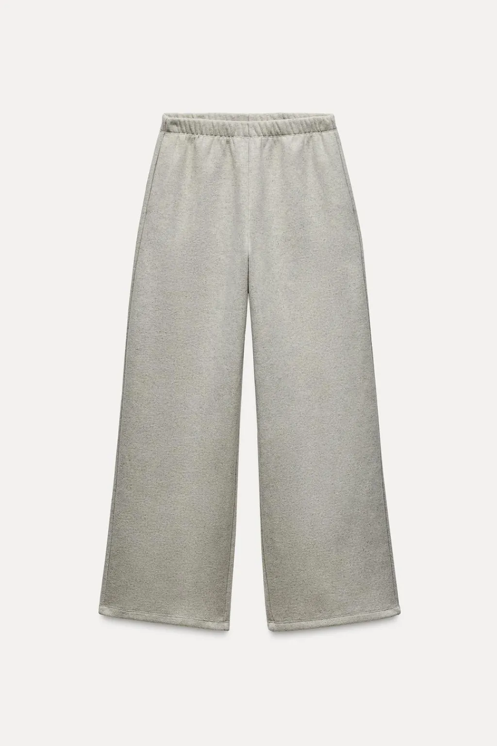 Pantalón de tiro medio y cintura con elástico. Pierna ancha.