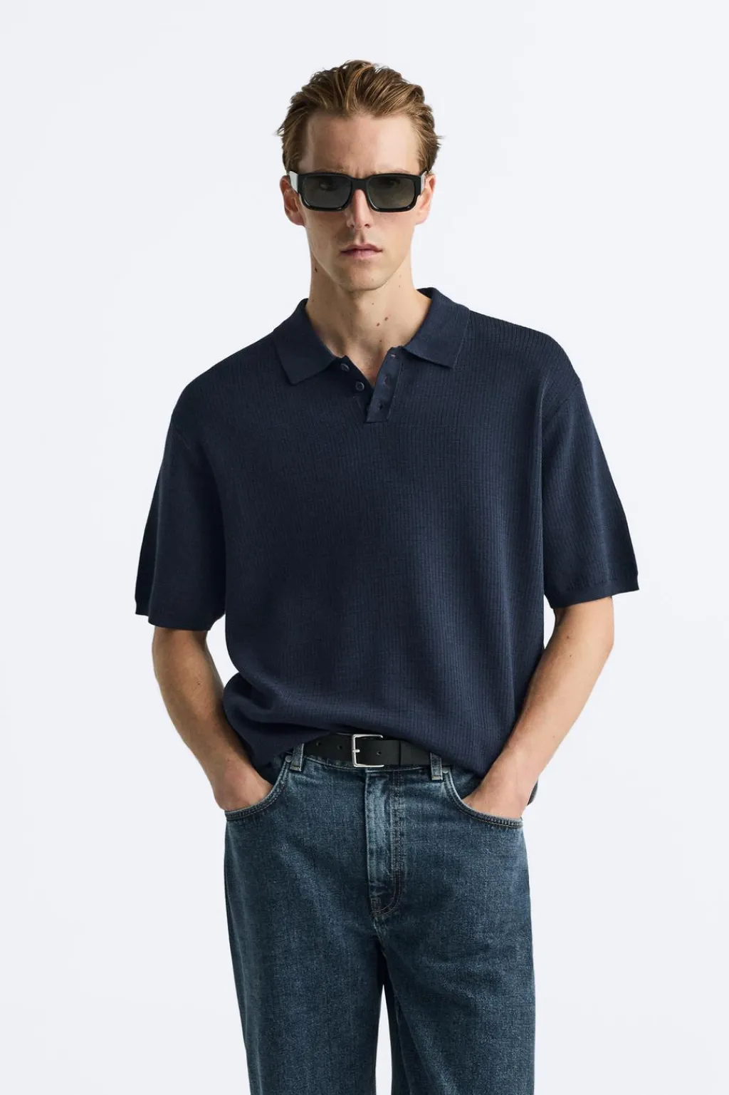 Polo de punto tejido en hilatura con mezcla de algodón y seda. Cuello solapa con cierre frontal de botonadura y manga corta. Acabados en rib.