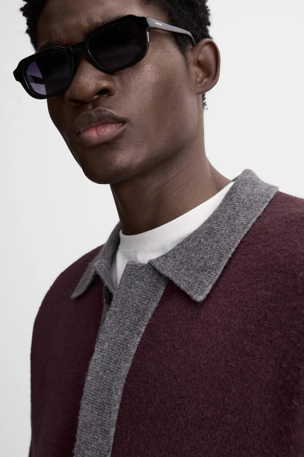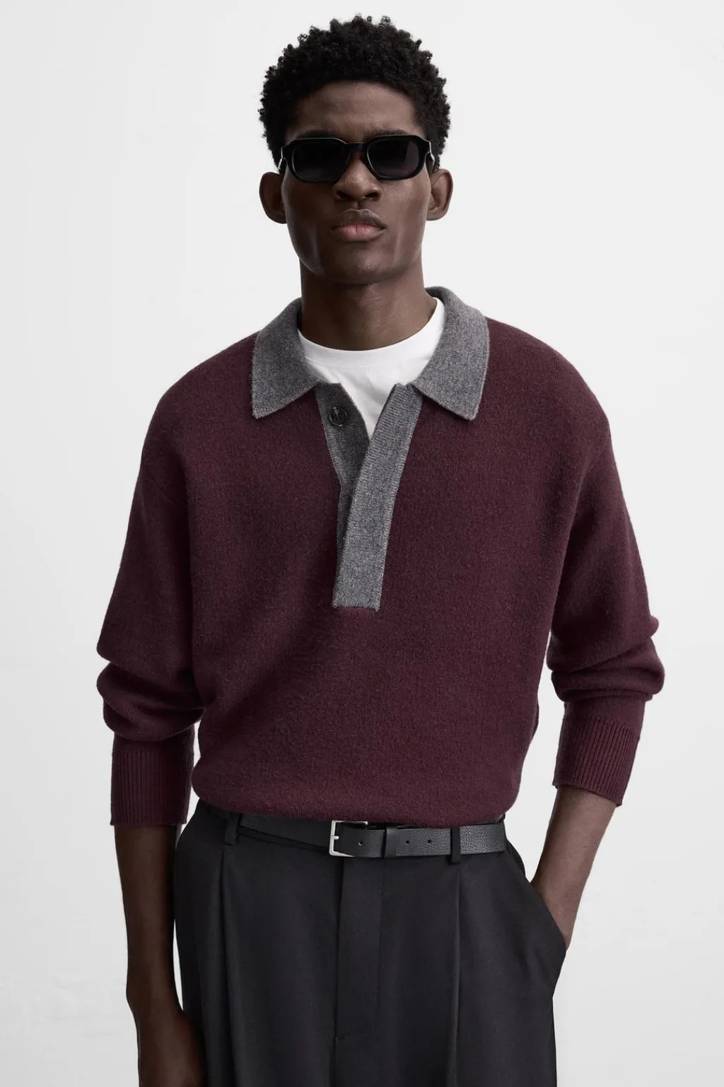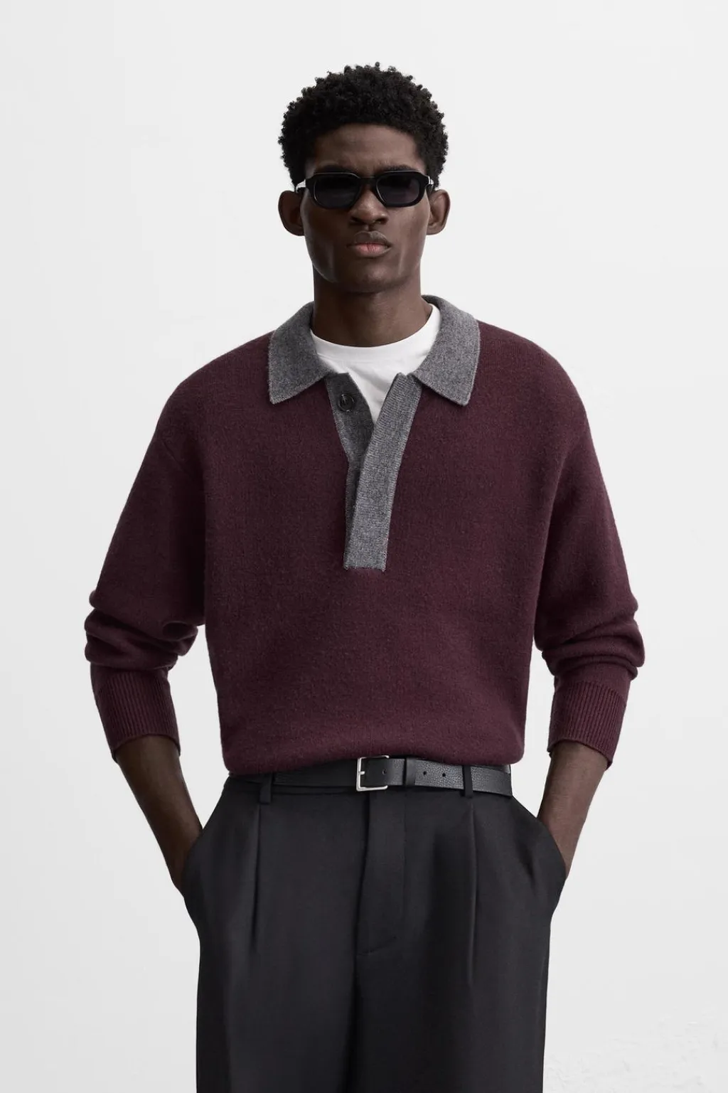Polo de punto regular fit tejido en hilatura con viscosa. Cuello solapa con cierre frontal de botonadura. Manga larga acabada en rib. Bajo con aberturas laterales