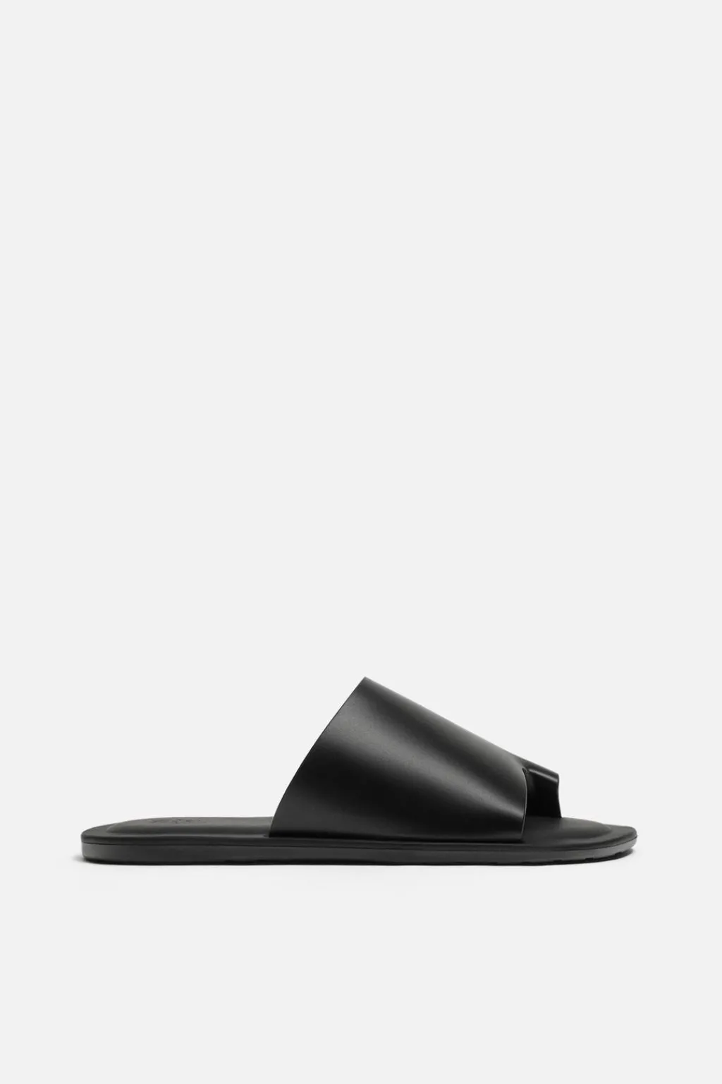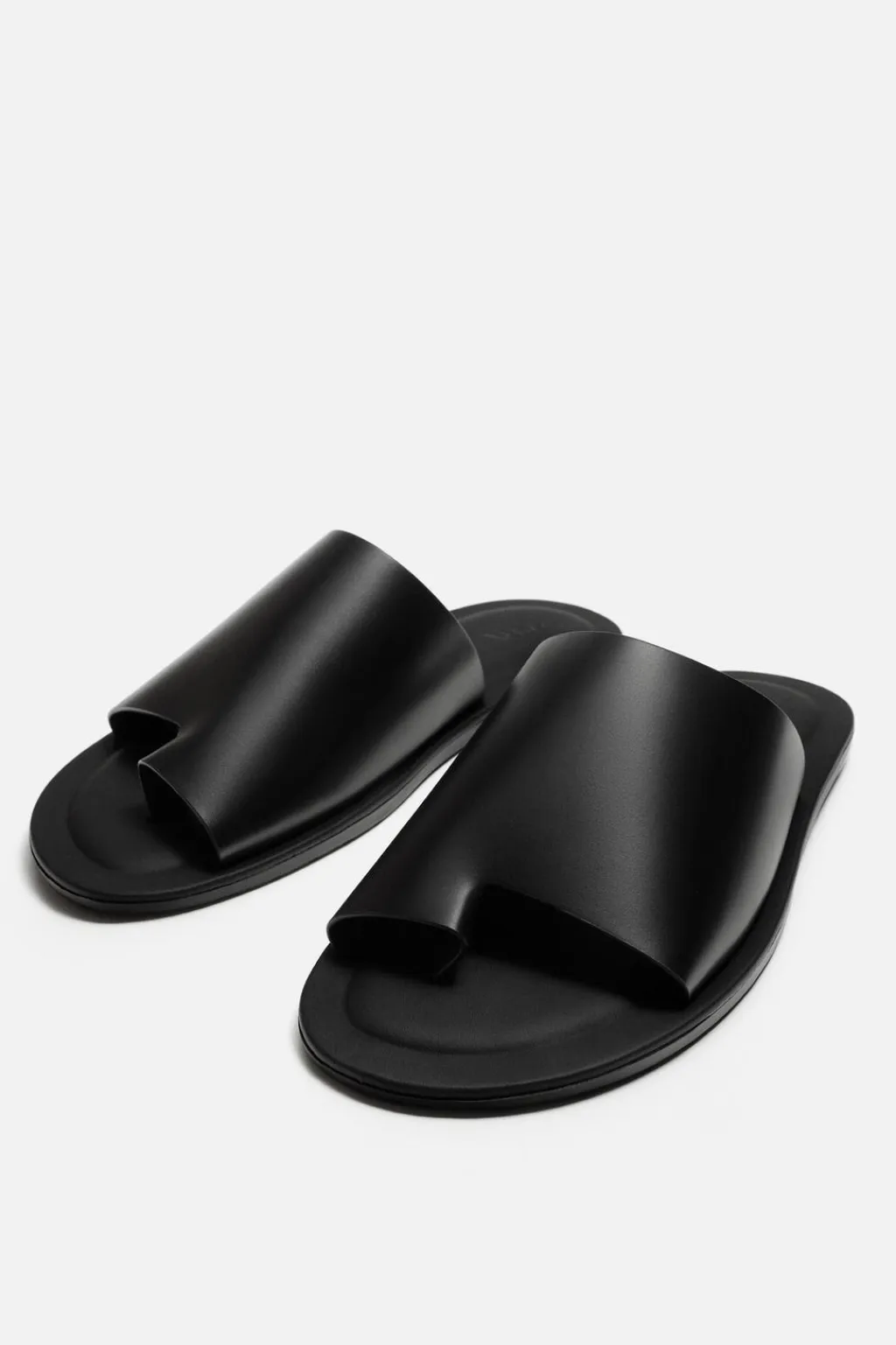 Sandalia tipo pala fabricada en piel. Construcción envolvente. Ajuste en el dedo para facilitar el confort durante su uso. Suela en mismo tono de color que el corte.