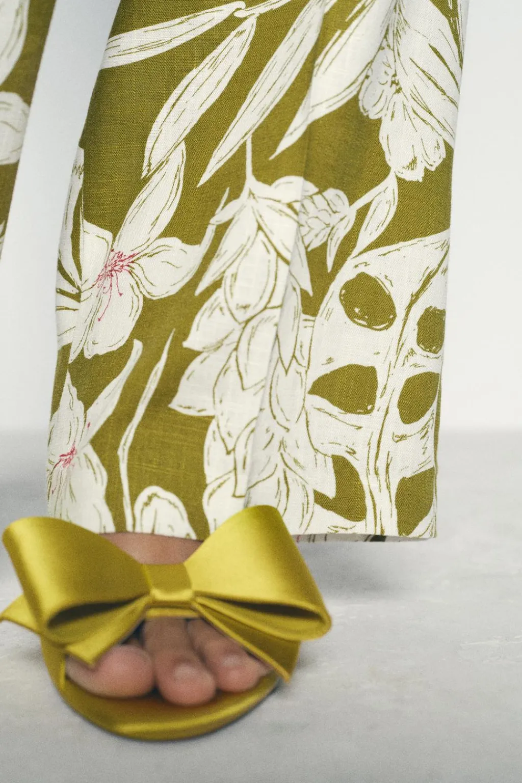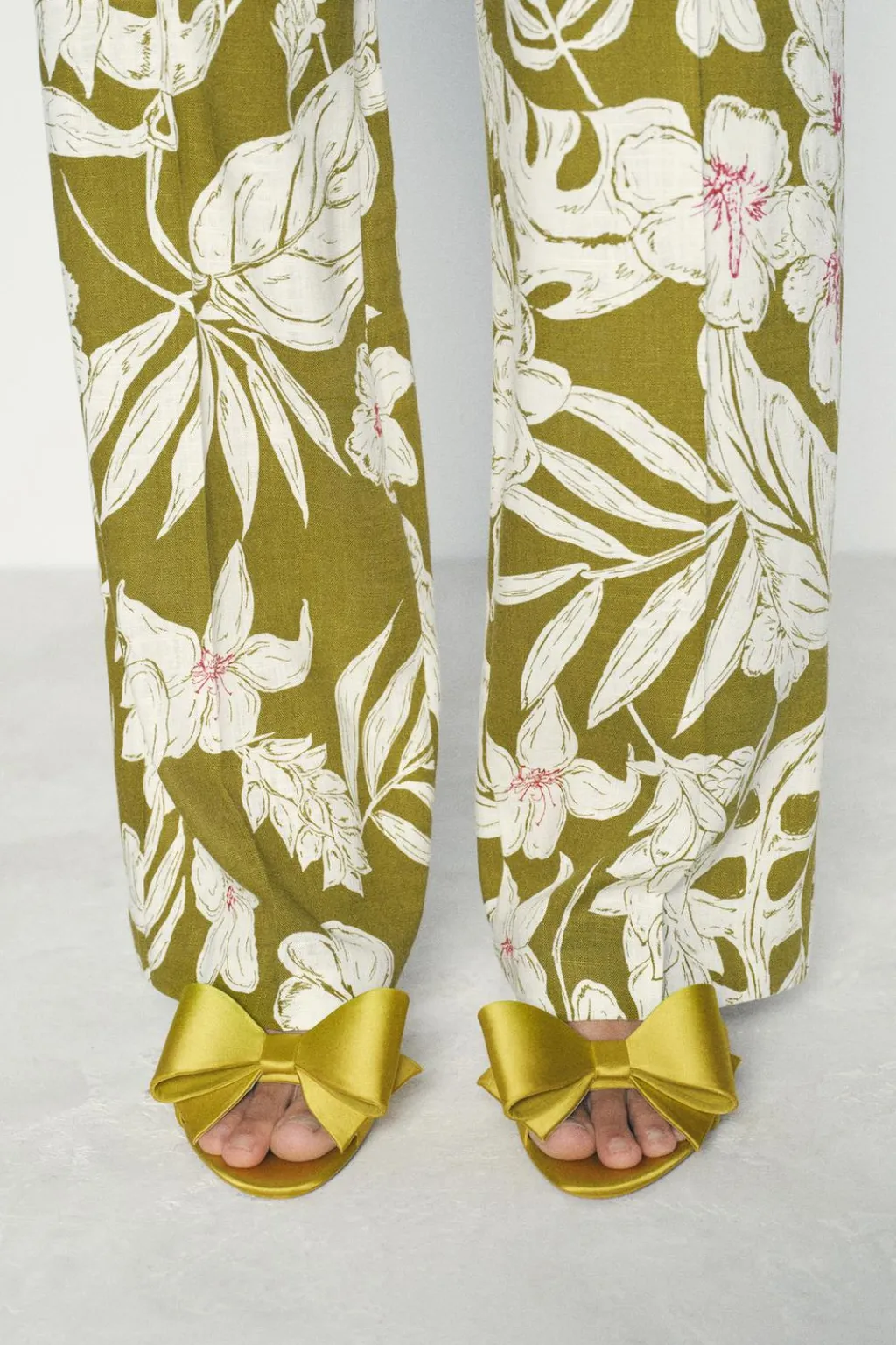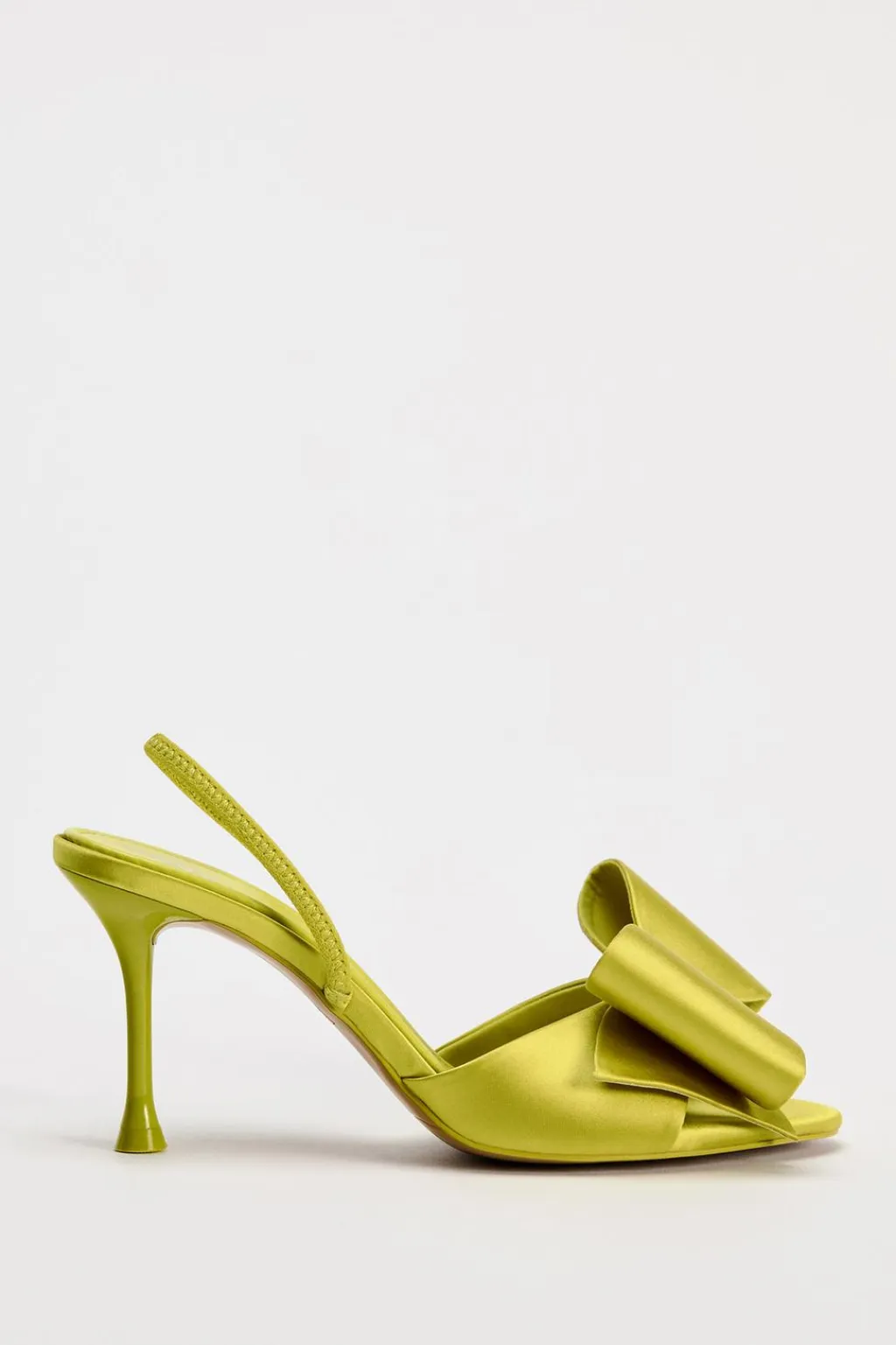 Zapato tipo sandalia de tacón alto y fino con efecto satinado. Detalle de lazo en la parte delantera. Tira trasera con pieza elástica.
