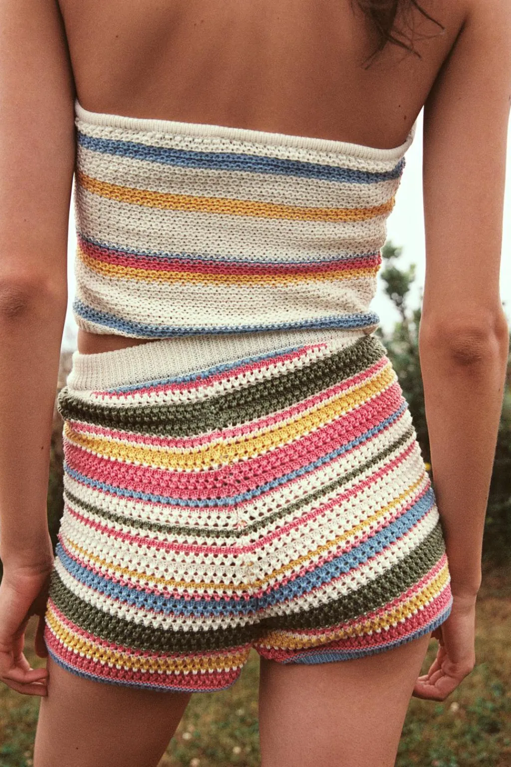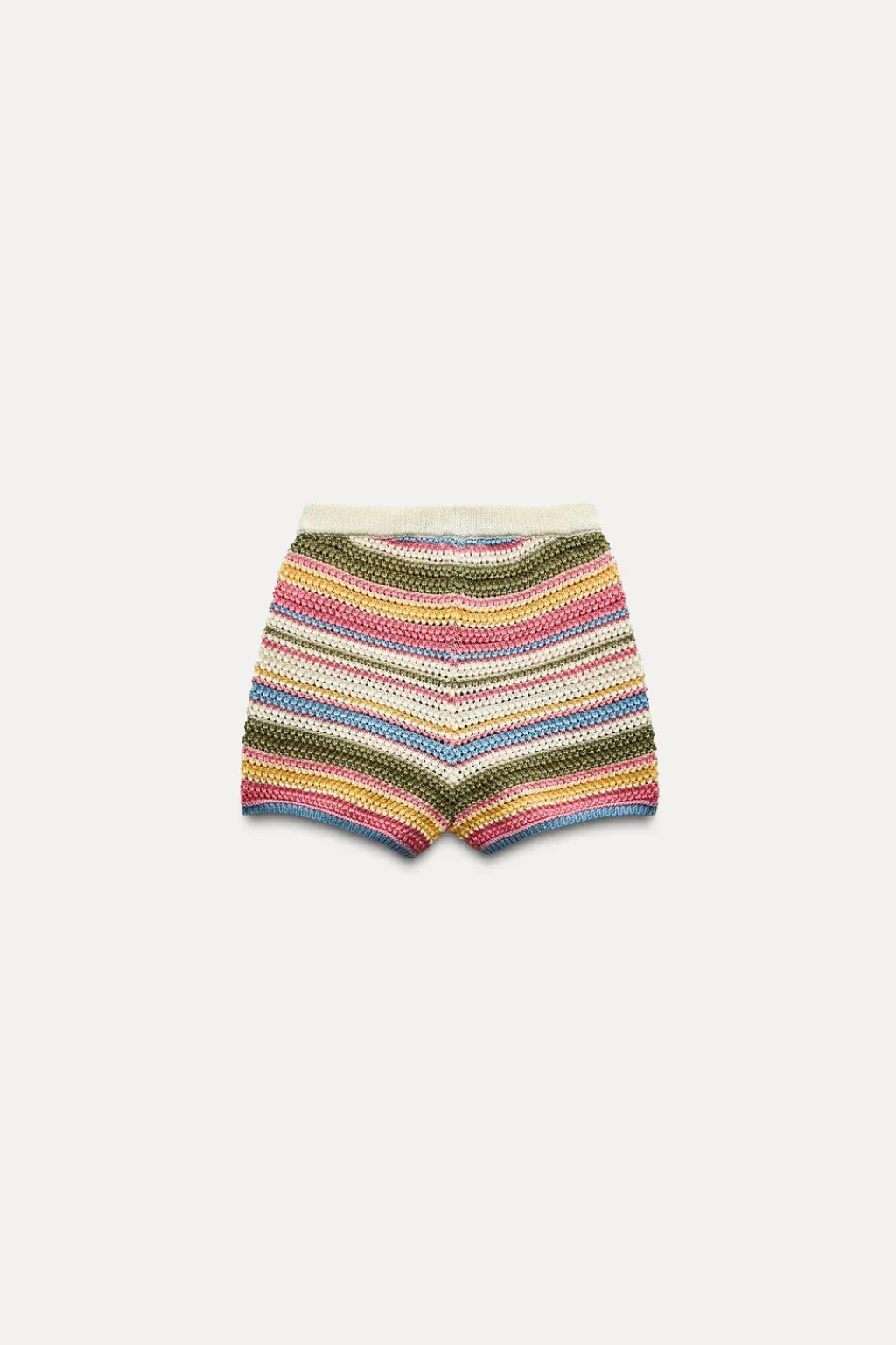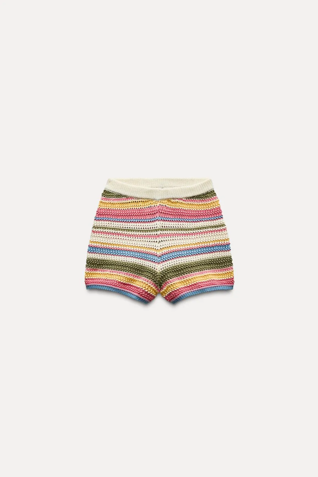 Shorts confeccionado en crochet. Tiro alto con cintura elástica.