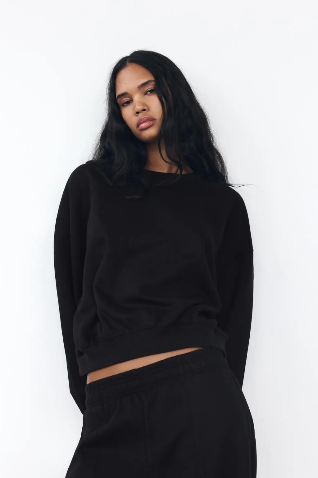 Sudadera de cuello redondo y manga larga. Acabados en rib.