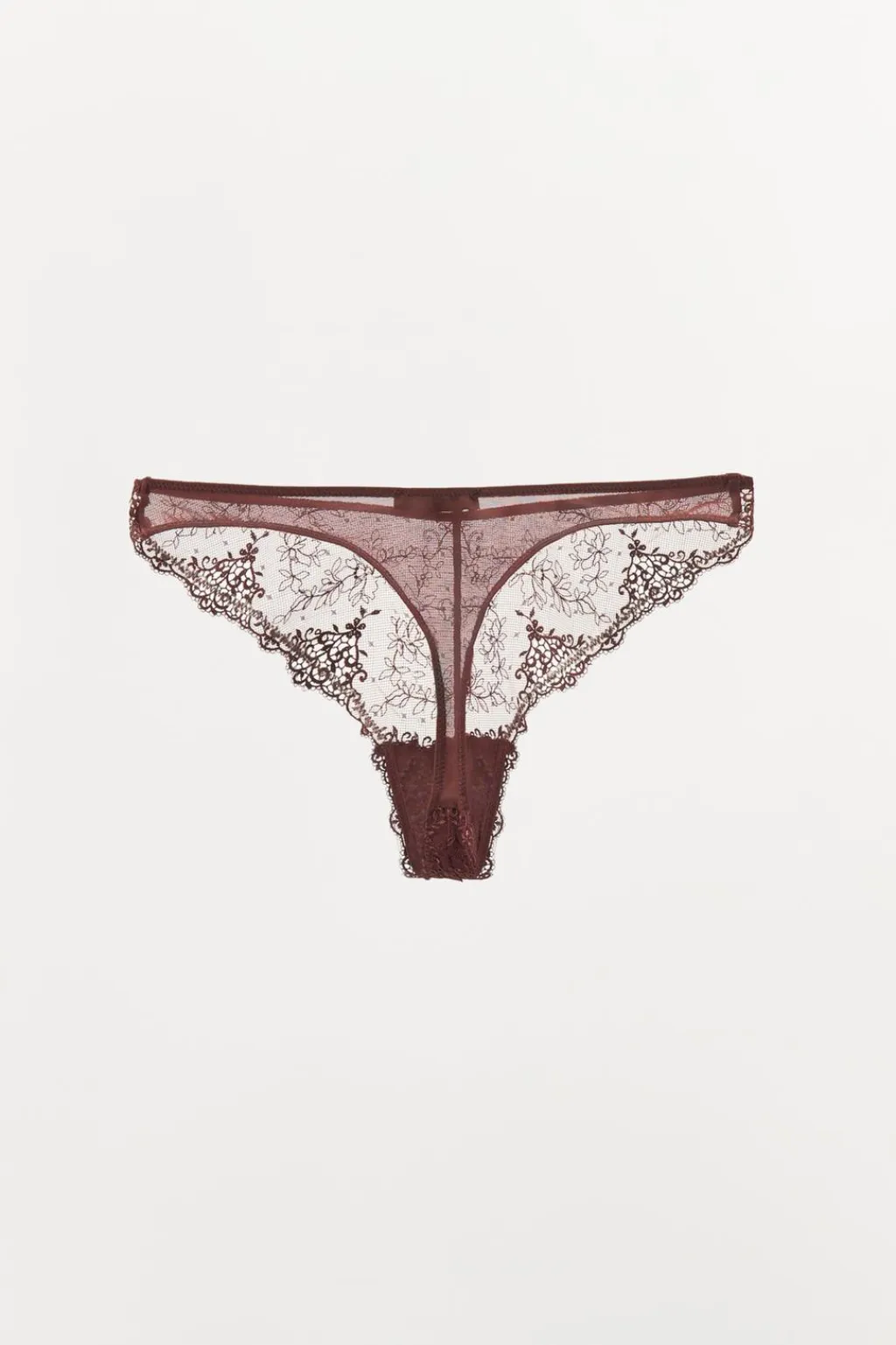 Tanga confeccionado en encaje suave con cintura elástica.