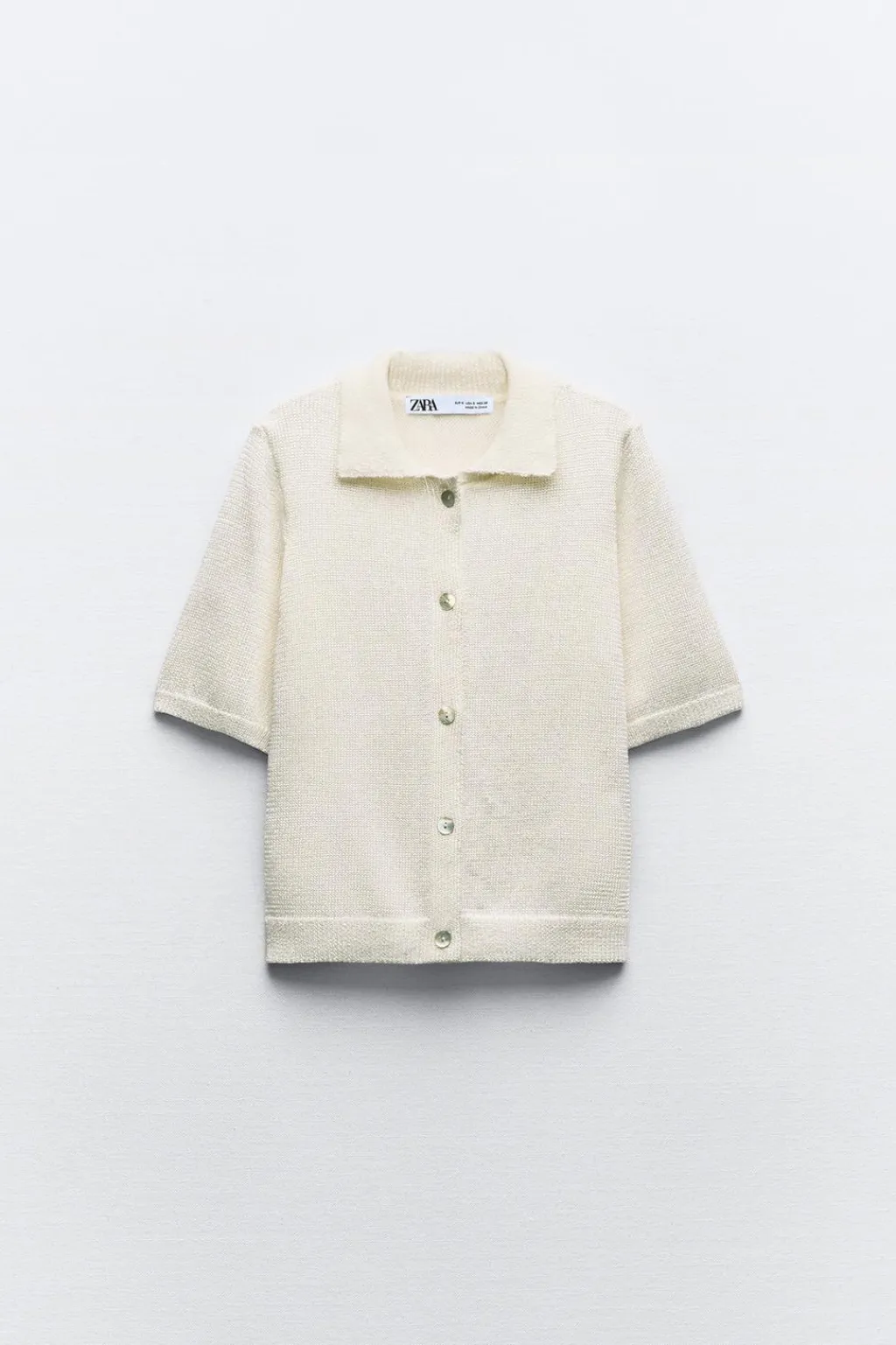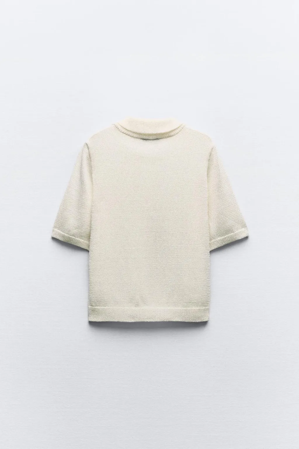 Top de cuello polo con manga corta. Cierre frontal con botones.