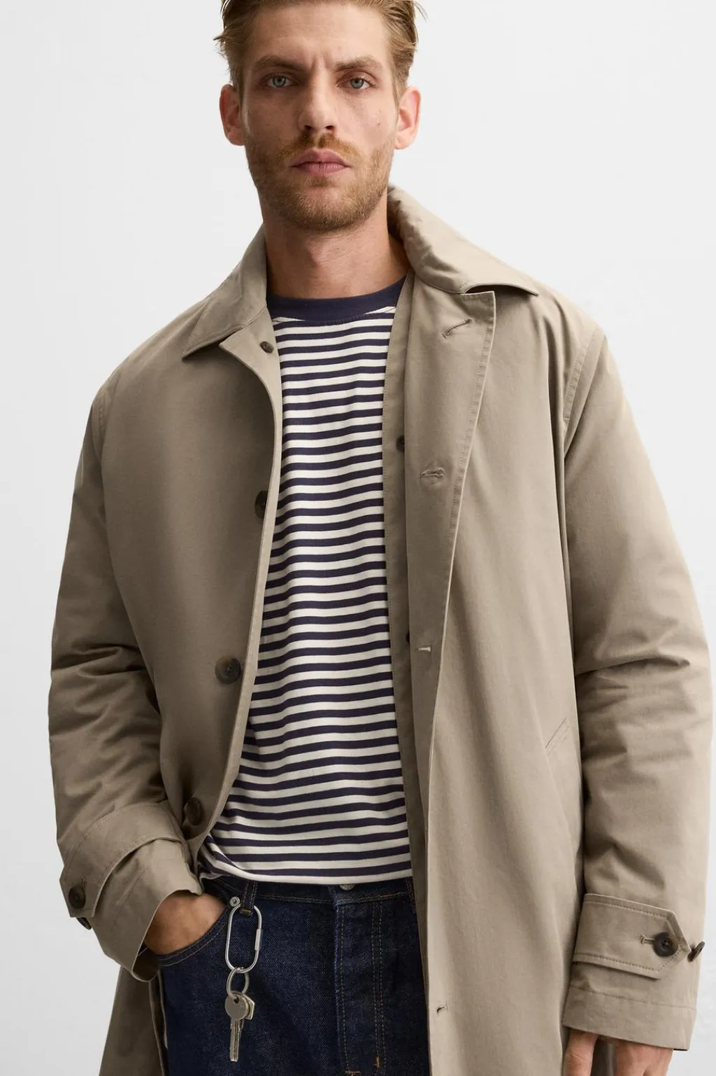Trench relaxed fit con el interior acolchado desmontable. Cuello solapa y manga larga. Bolsillos de vivo en cadera. Bajo con abertura central en espalda. Cierre frontal de botonadura.