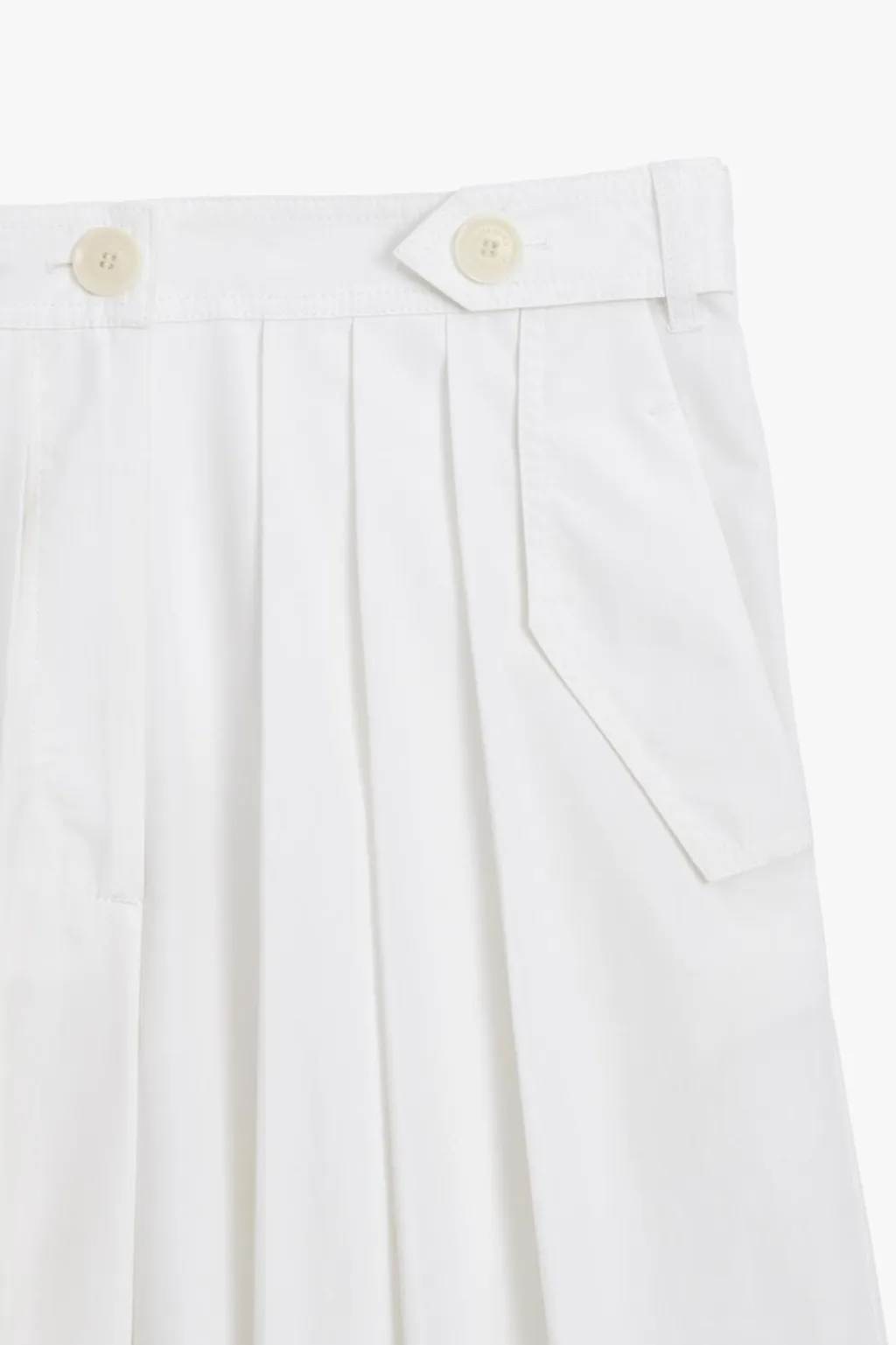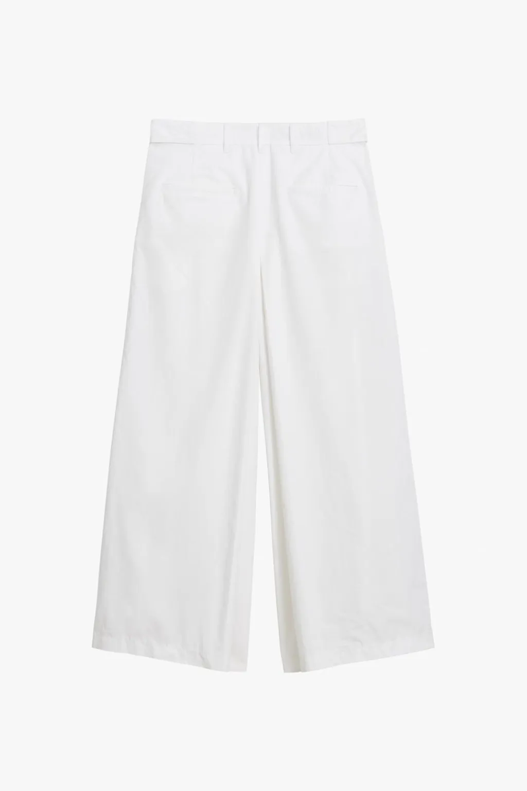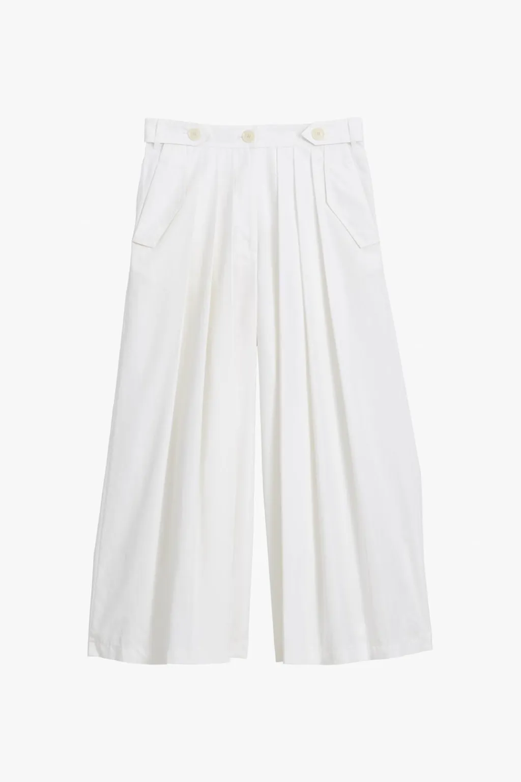 Pantalón de tiro medio confeccionado en hilatura con mezcla de algodón. Cintura con trabillas y botones. Bolsillos con solapa en delantero y de vivo en espalda. Detalle de pinzas frontales. Pierna ancha. Cierre frontal con cremallera y botón.