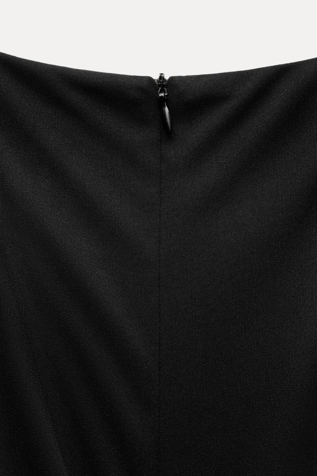 Vestido corto confeccionado en tejido tipo punto. Cuello redondo y manga sisa con hombreras. Detalle de abertura en cintura y tejido drapeado. Forro interior combinado a tono. Cierre en espalda con cremallera oculta en costura.
