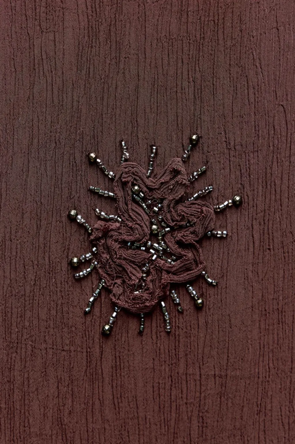 Vestido midi de escote pico y tirantes finos. Detalle de bordados a tono y abalorios.