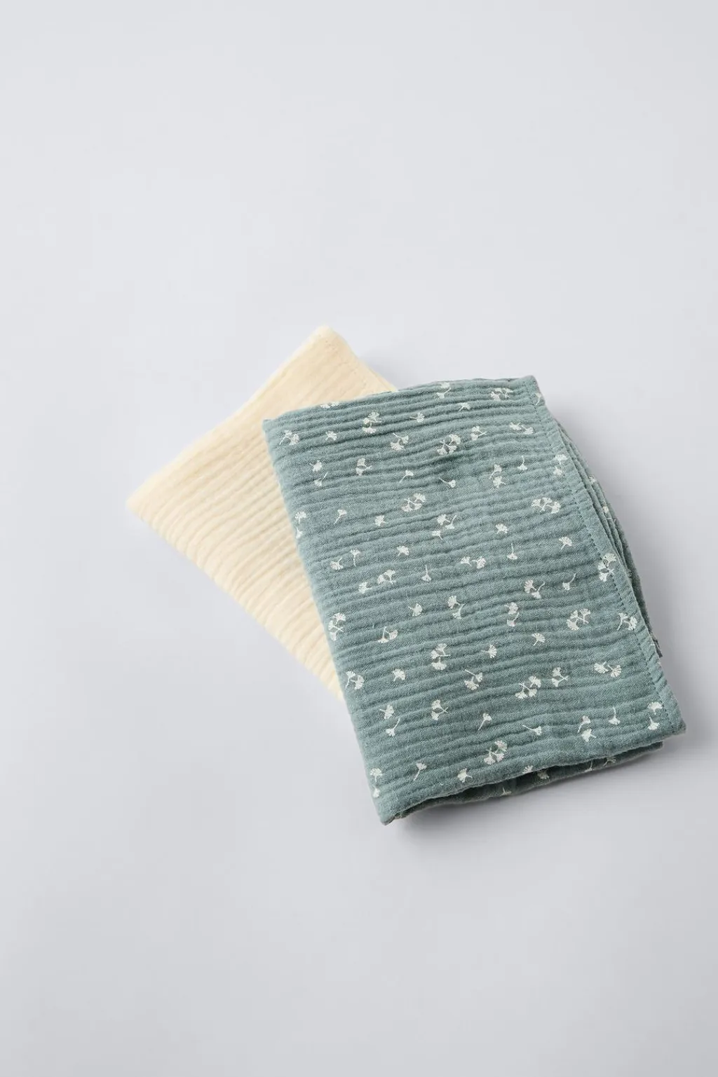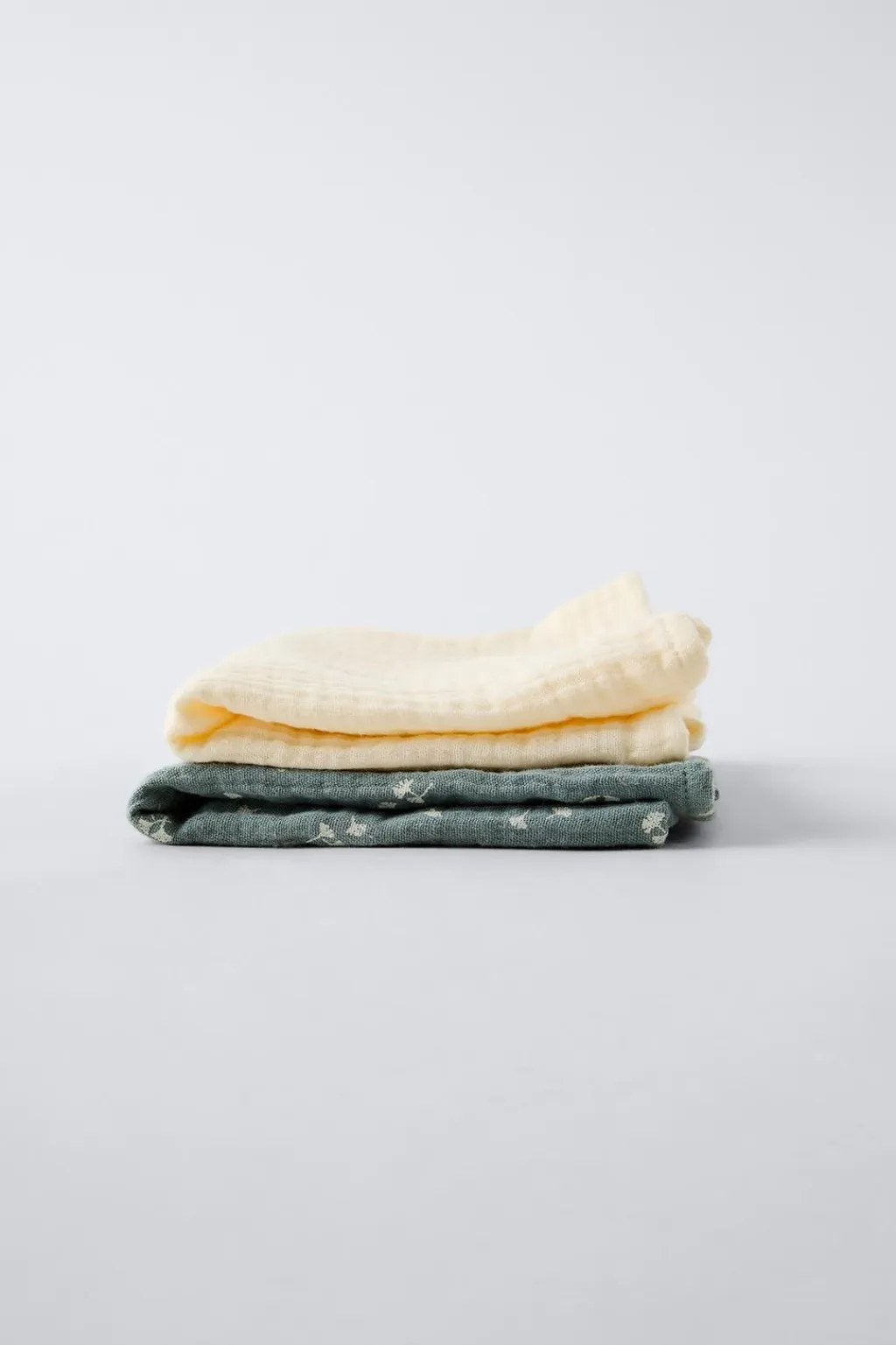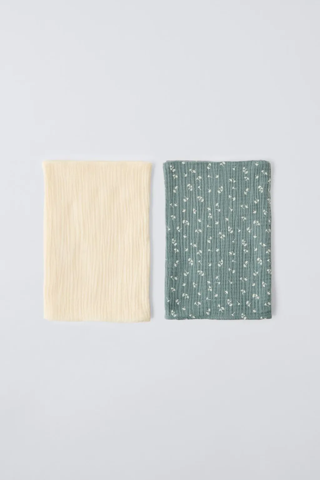 Pack de dos piezas. Muselinas cuadradas con tejido estampado y liso.