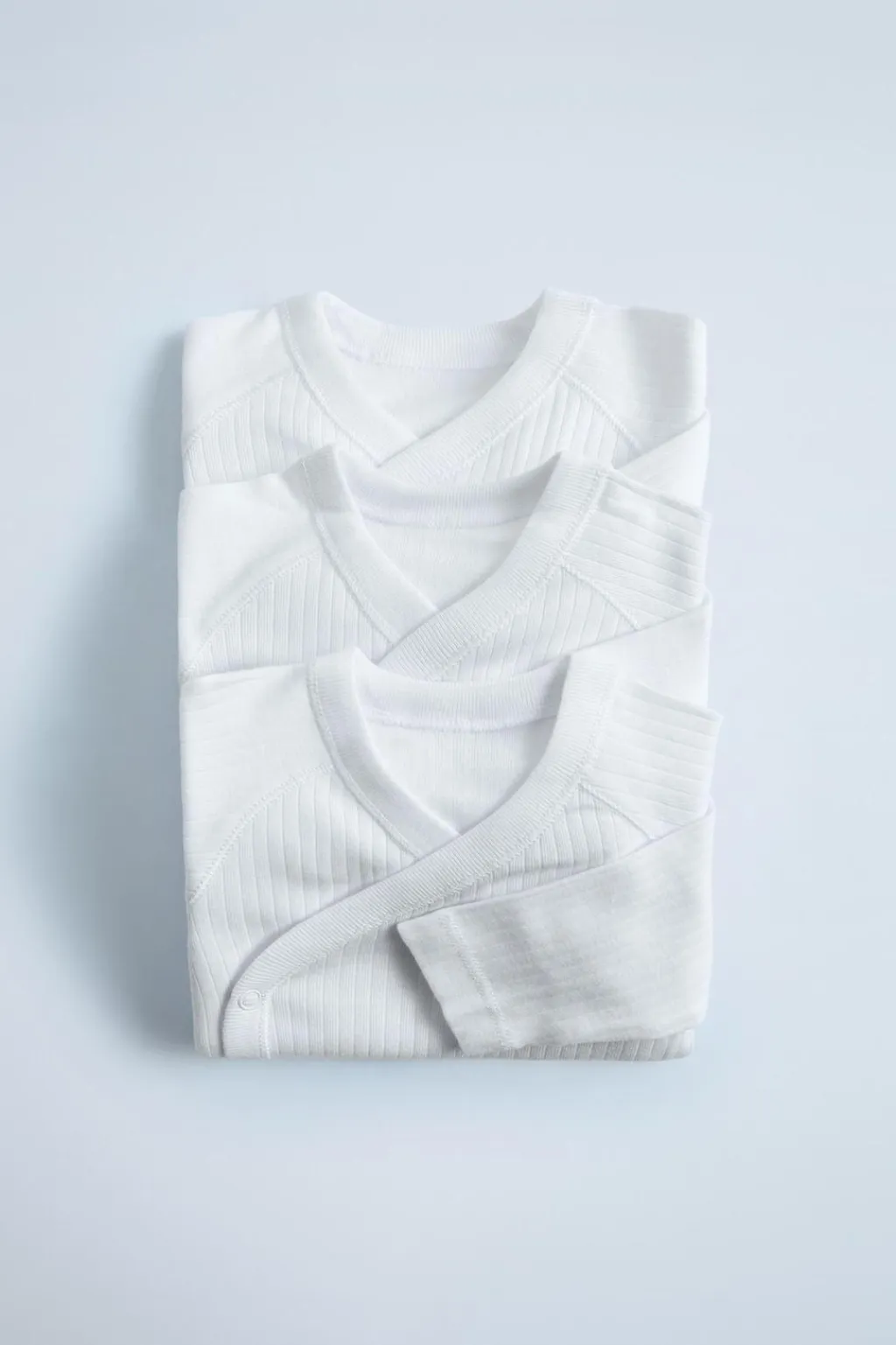 Pack de tres bodies con cuello kimono y manga larga. Cierre botones presión en bajo.