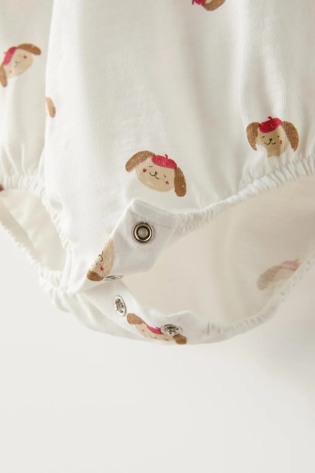 Body con cuello redondo y manga corta. Cierre en bajo con botones ajustables.