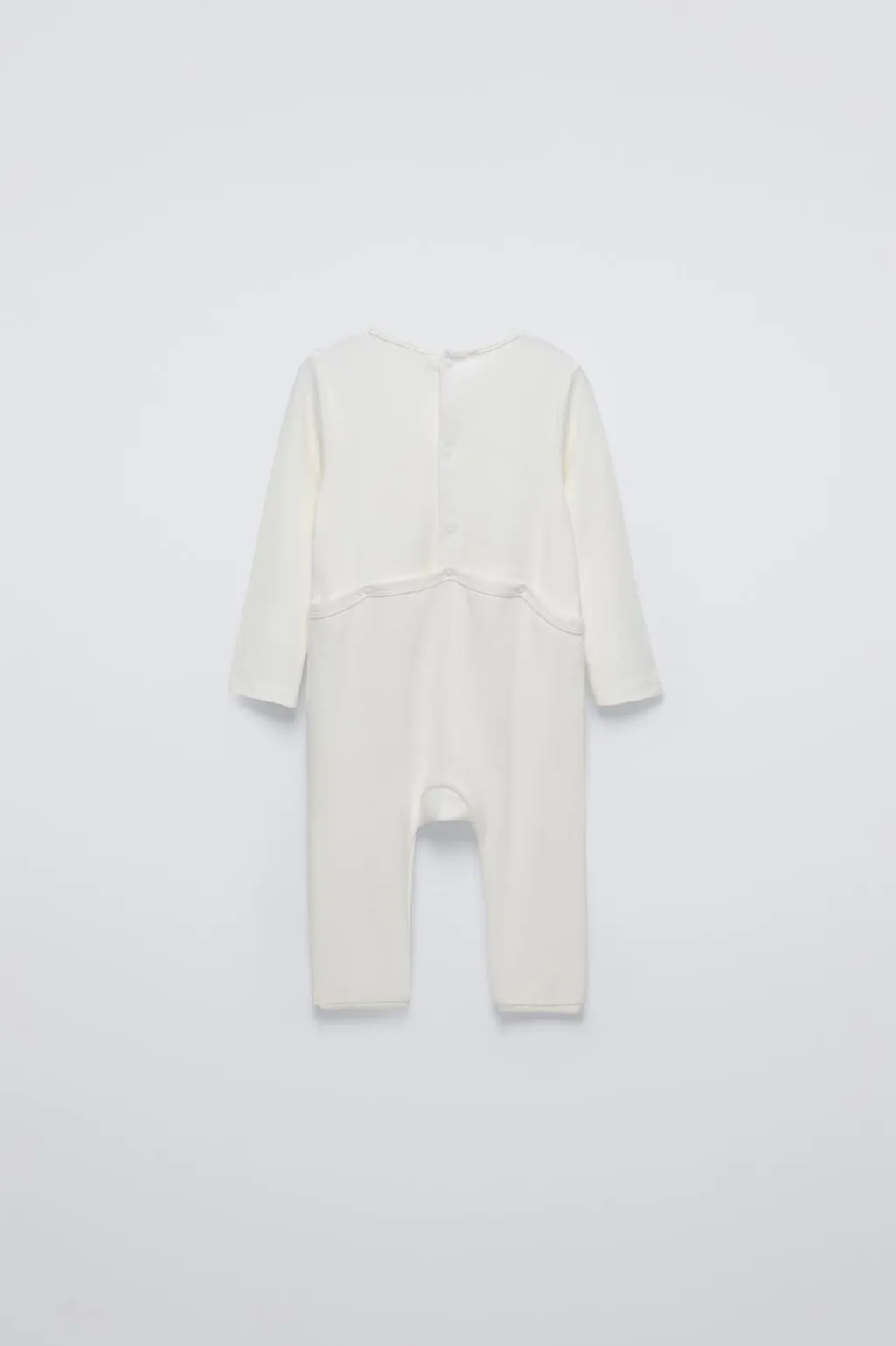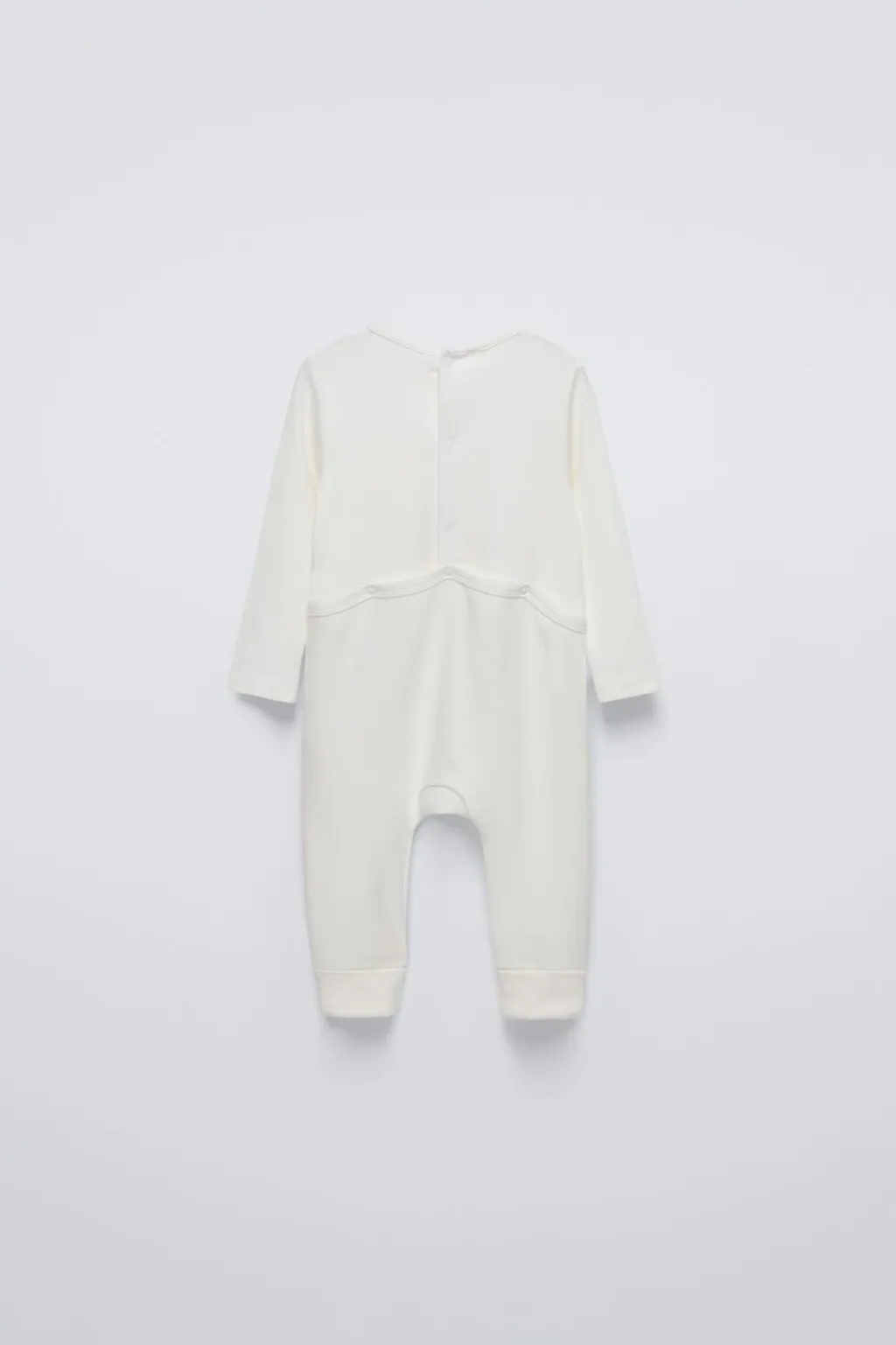 Pijama con cuello redondo y manga larga. Bajo con largo ajustable y opción de convertirse en calcetín, pijama cerrado. Bolsillo de tipo plastrón en pechera. Cierre botones de tipo presión en espalda.
