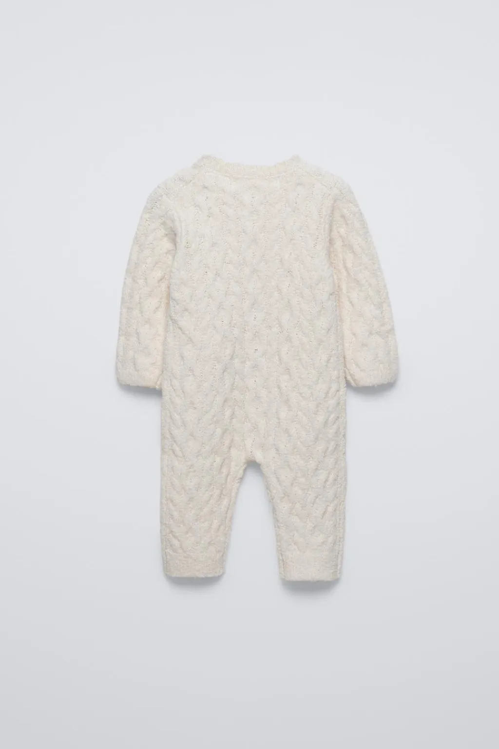 Mono de punto ochos con cuello redondo y manga larga. Cierre con botonadura frontal.