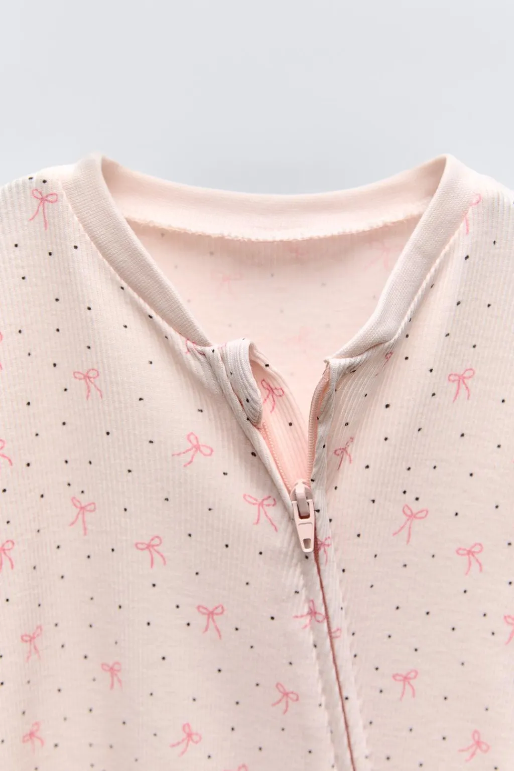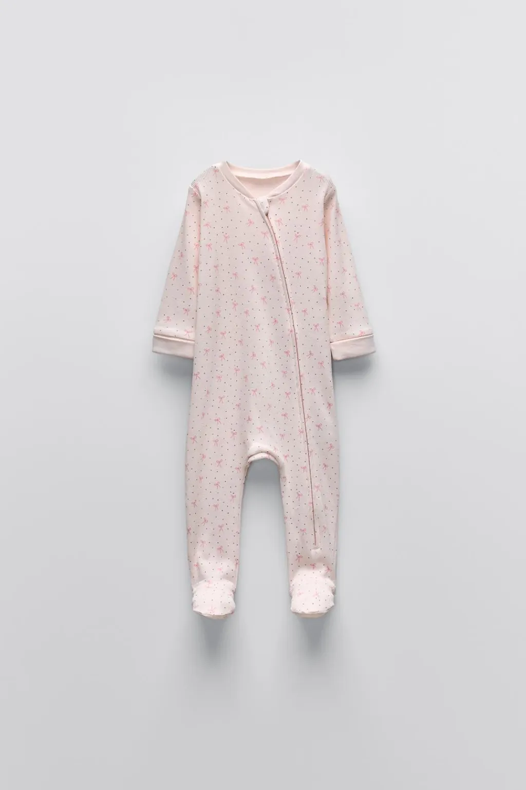 Pijama con cuello redondo y manga larga ajustable. Cierre cremallera frontal. Huellas antideslizantes en pies a partir de la talla 18-24.
