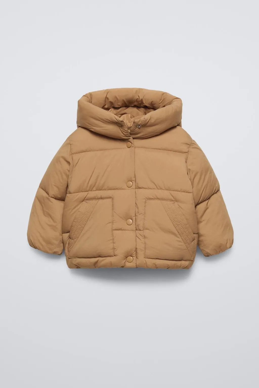 Cazadora con capucha, cuello subido y manga larga acabada en goma. Cierre botonadura frontal con botones tipo presión. Bolsillos de tipo plastrón en delantero.