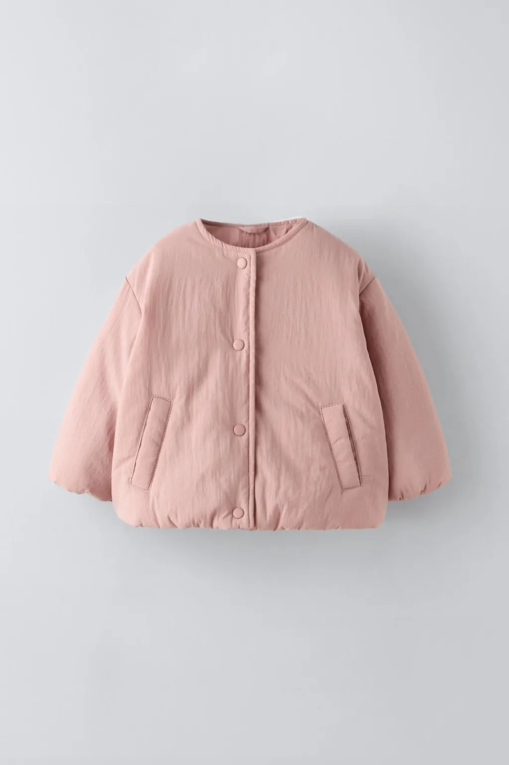 Cazadora con cuello redondo y manga larga acabada en goma. Cierre botones de tipo presión en delantero. Bolsillos con detalle vivo.