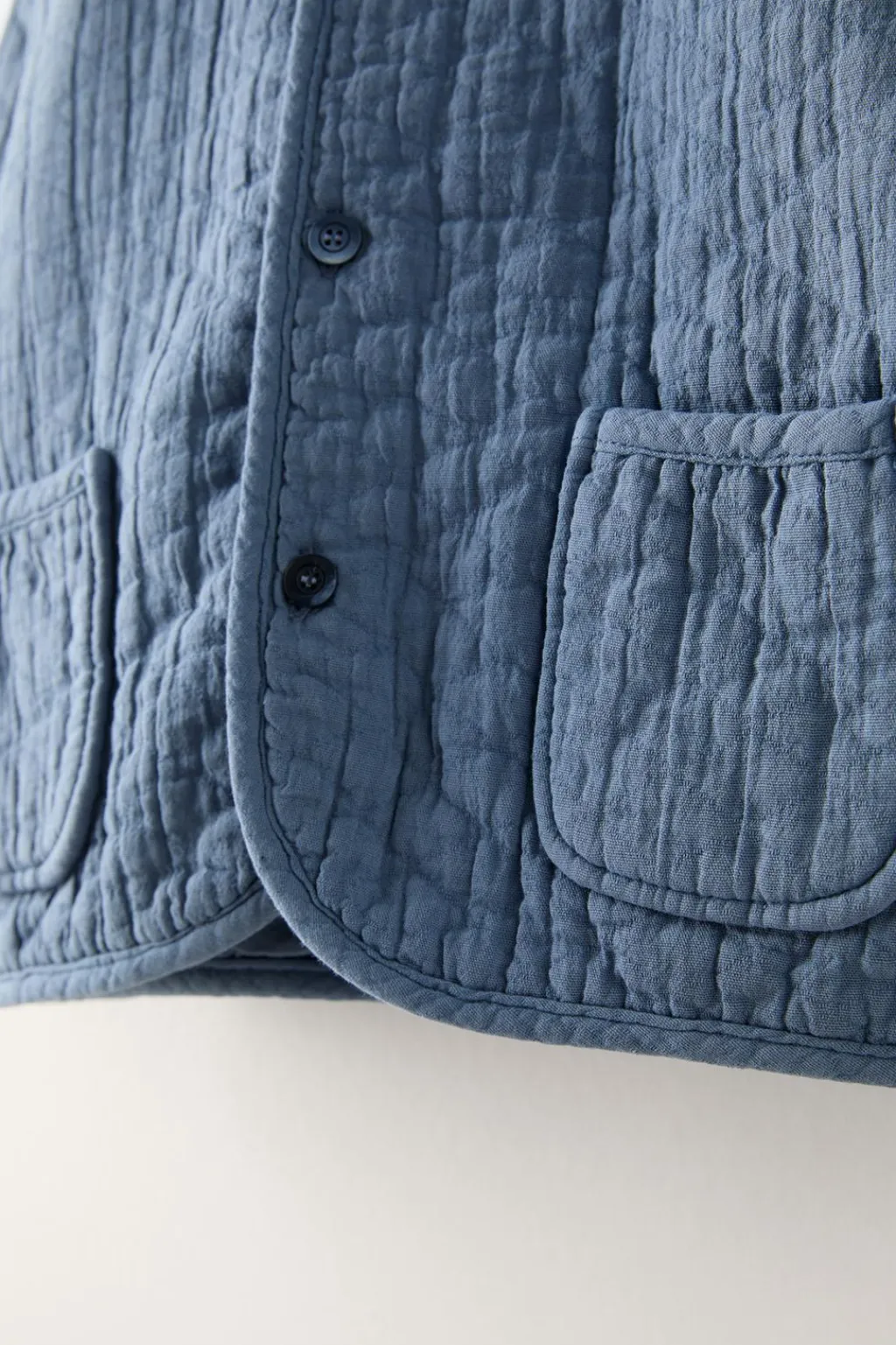 Chaqueta con cuello redondo y manga larga. Cierre con botonadura frontal. Bolsillos tipo plastrón en delantero.