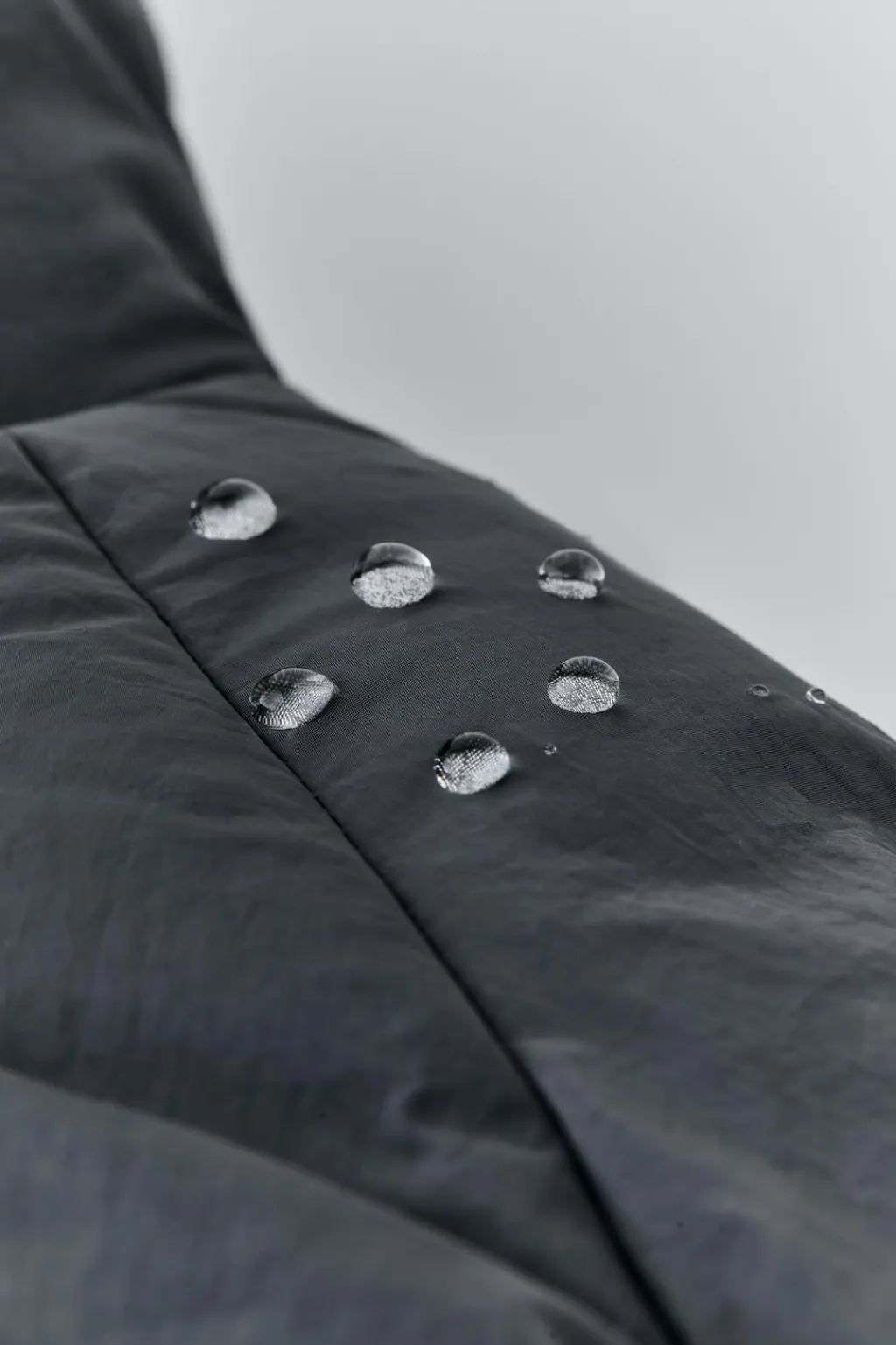 Abrigo con capucha y manga larga con puño interior. Cierre lateral concremallera oculta por tapeta con botones tipo snap. Bolsillos en delantero. Bajo acabado en goma. Tejido interior calidad suave.