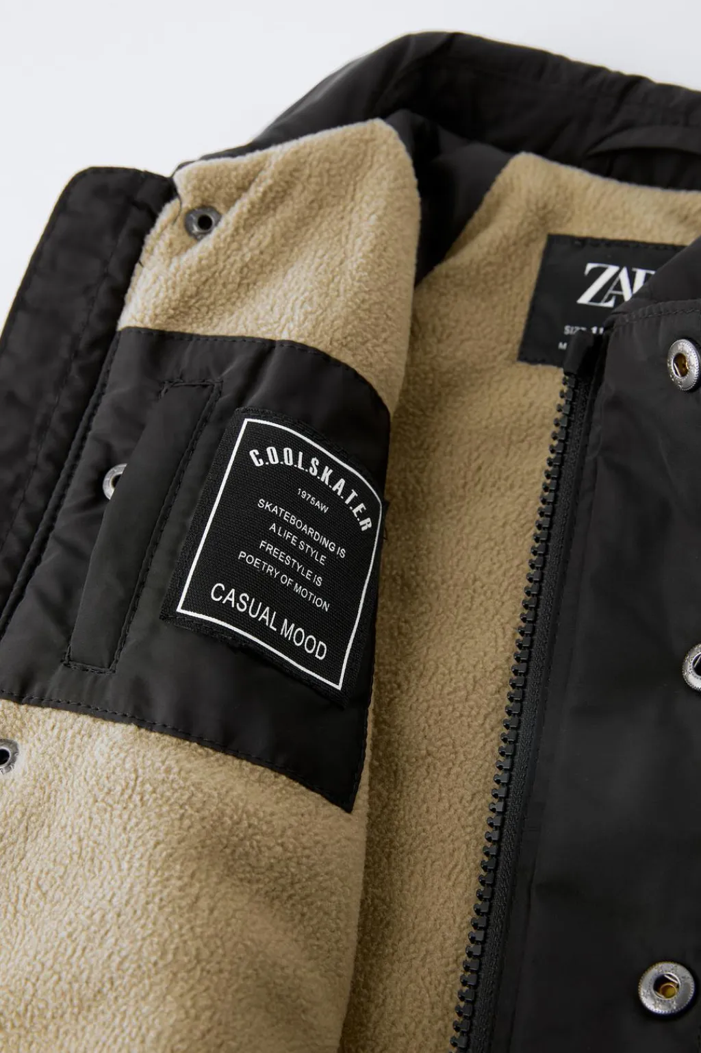 Parka ligera con cuello tipo camisero y manga larga acabada en goma. Cierre cremallera frontal oculta por solapa y cierre botones tipo presión. Bolsillos delanteros con detalle vivo. Aplique etiqueta en pechera. Forro interior en tejido polar y bolsillo con detalle vivo.