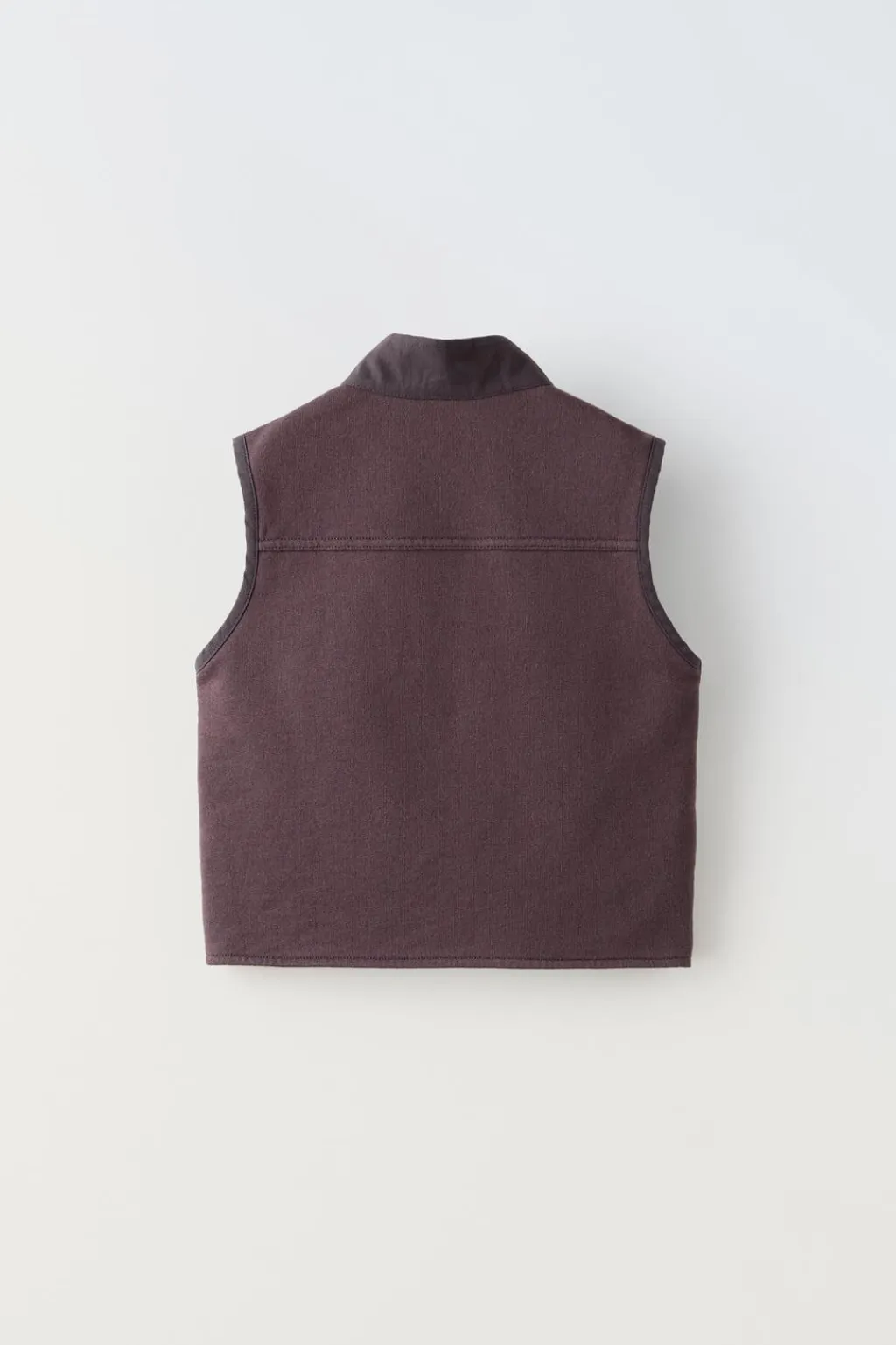 Chaleco con cuello subido y sin mangas. Bolsillos en delantero y aplique etiqueta.