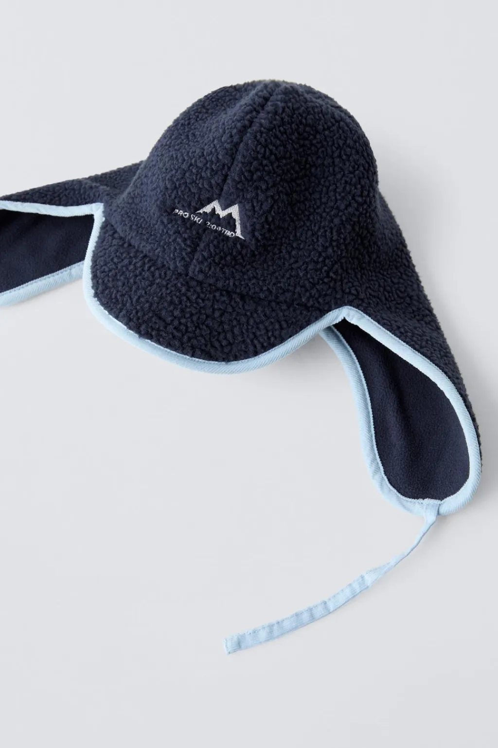Casquete de borreguillo con cierre cordones ajustables en frontal. Detalle bordado ski en delantero.