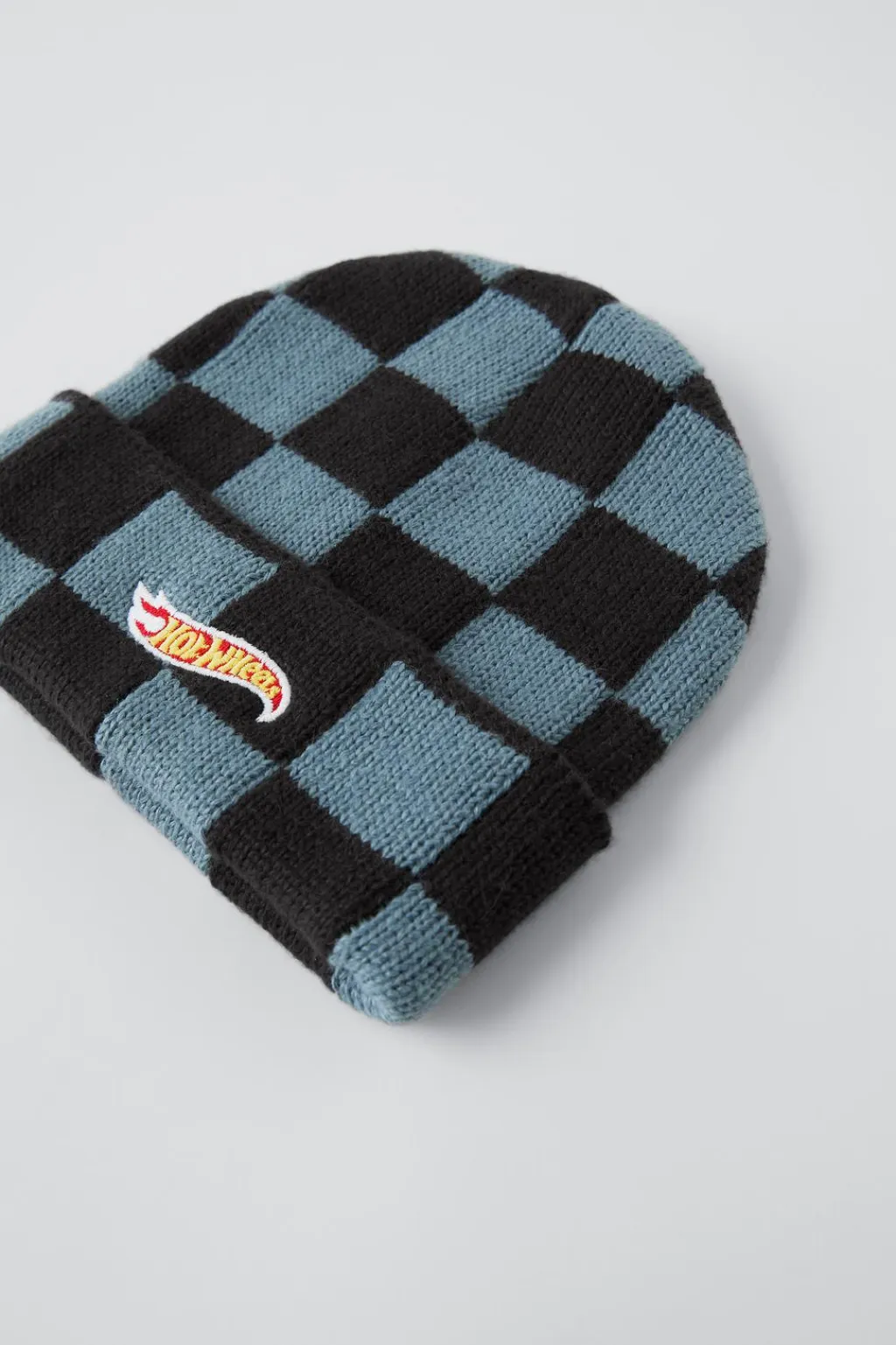 Gorro de punto con estampado cuadros. Bajo acabado en vuelta. Detalle bordado HOT WHEELS™ MATTEL en delantero.