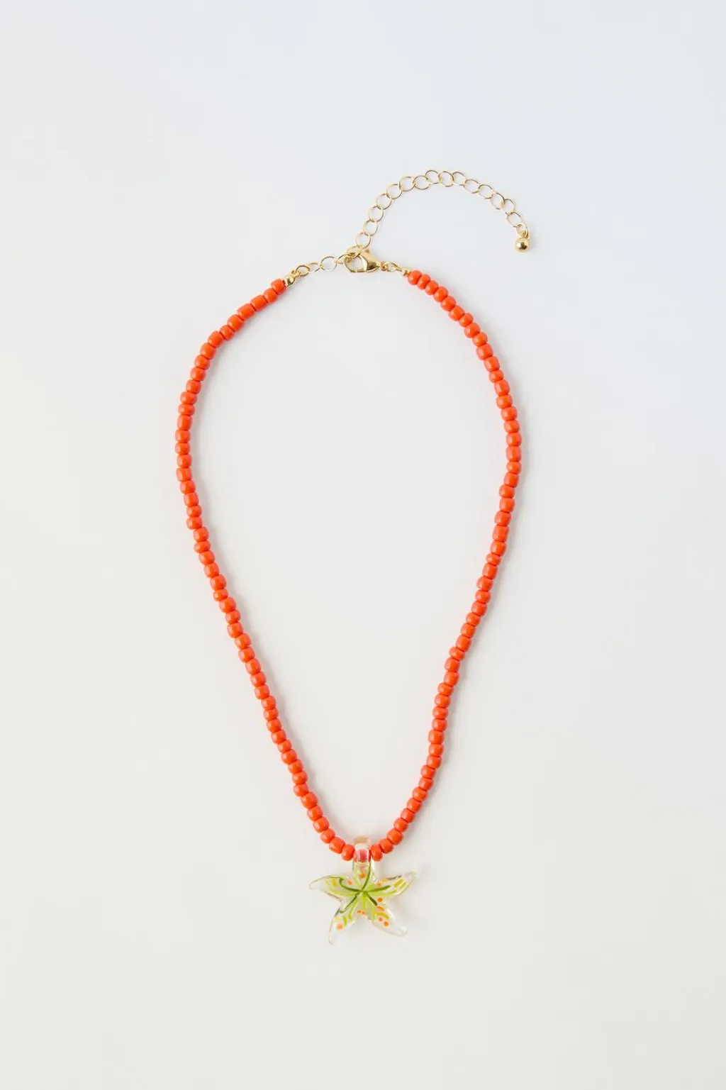 Collar de abalorios con cierre ajustable en nuca. Aplique estrella.