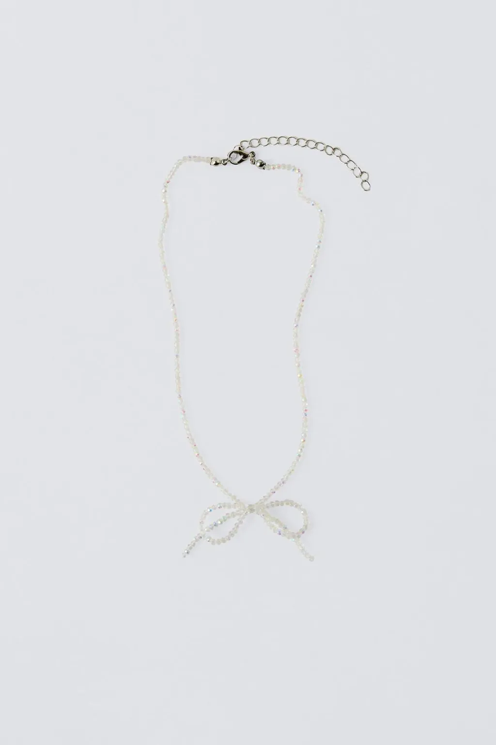 Collar de abalorios con cierre ajustable en nuca. Aplique colgante de lazo.