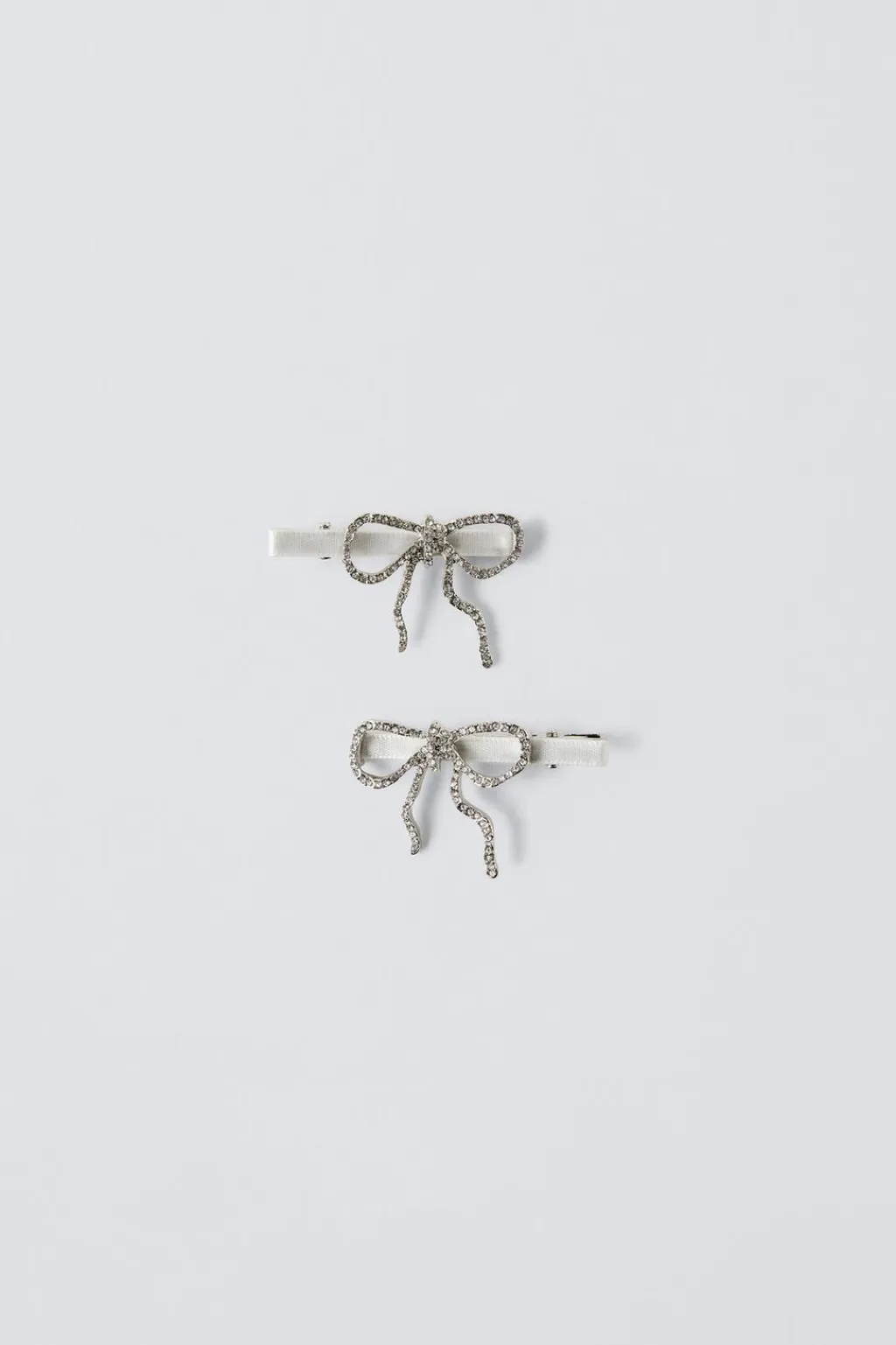 Pack de dos pinzas con aplique lazo y detalle brillos.