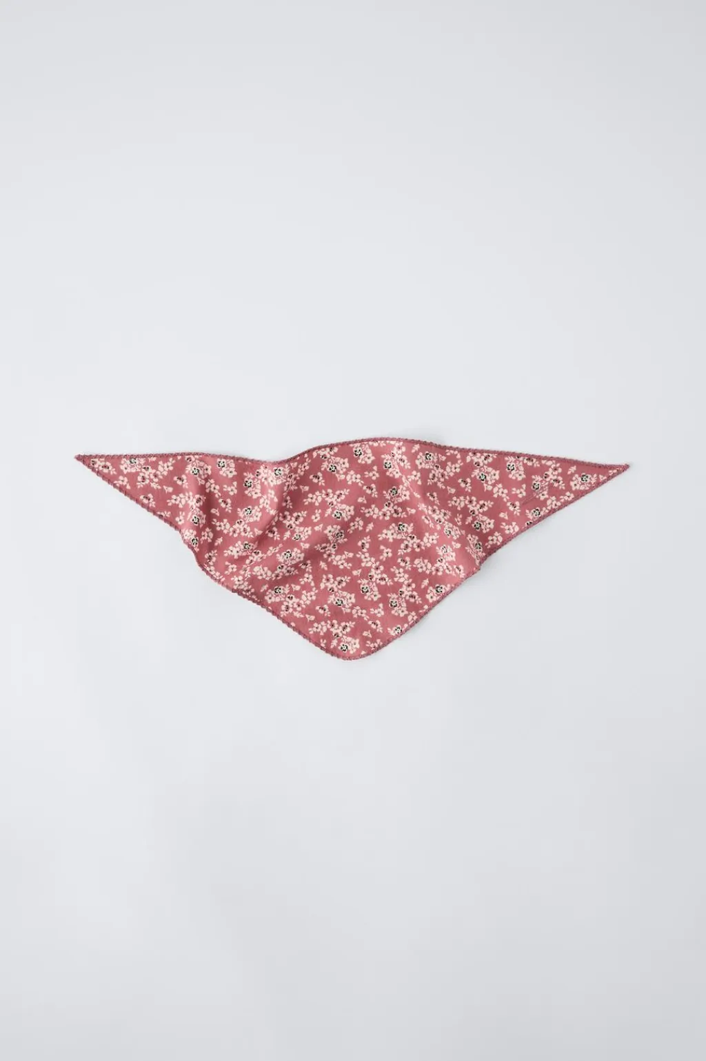 Bandana triangular con estampado flores y abertura para cierre. Detalle picueta en acabados.