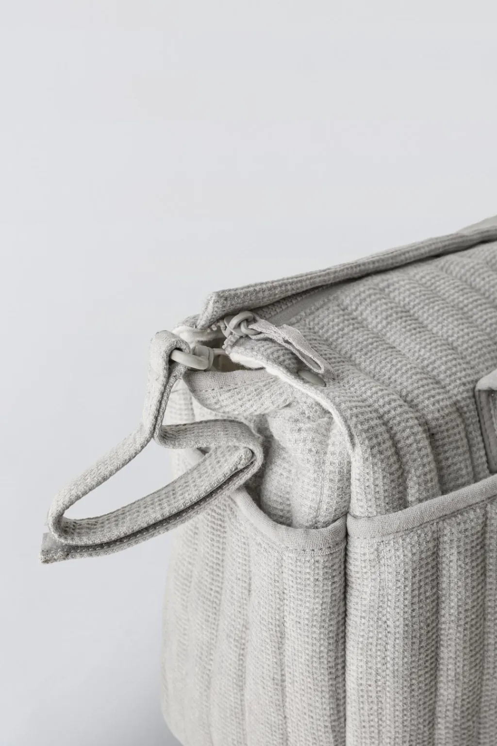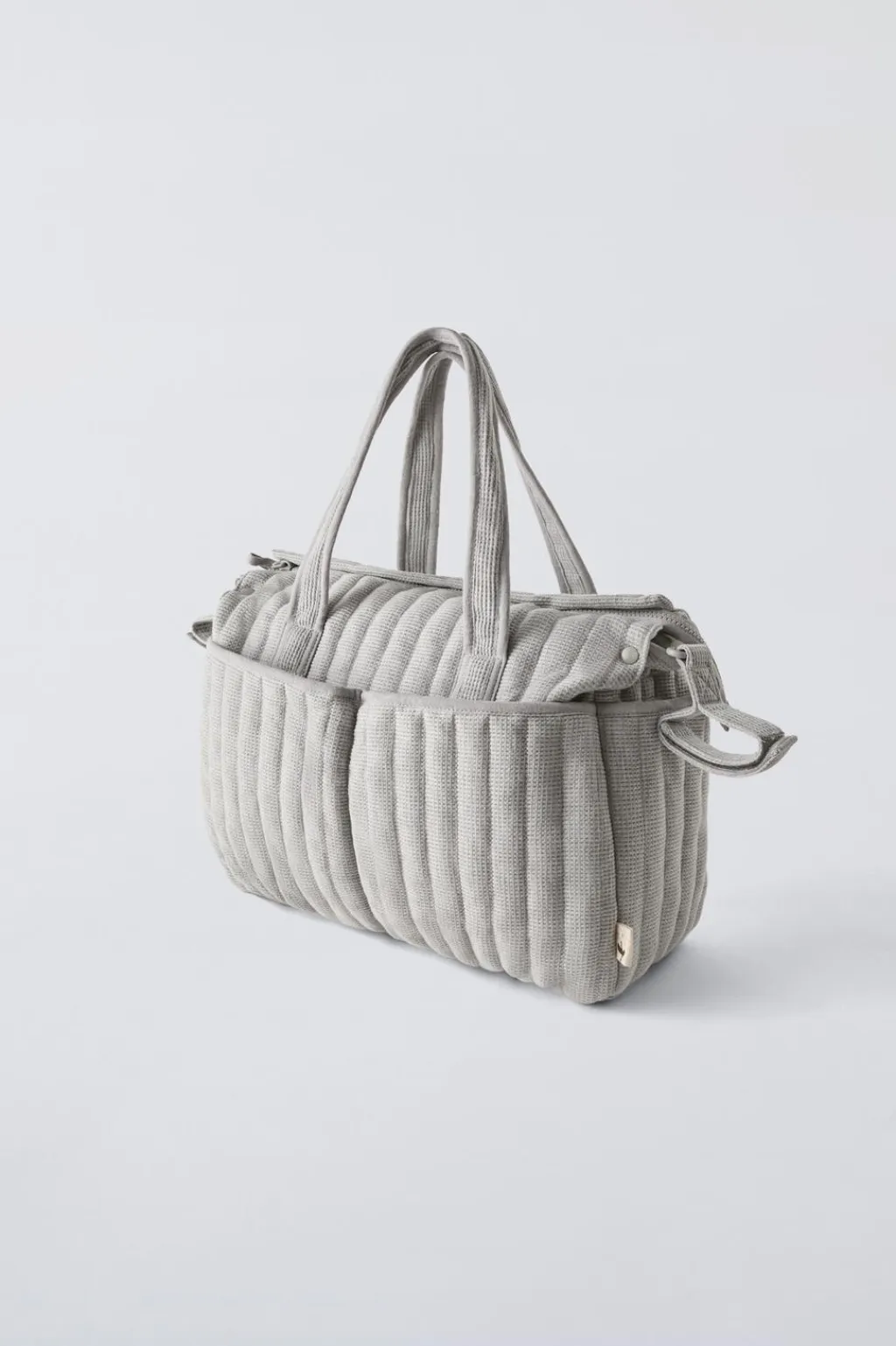 Bolsa de maternidad de algodón para pañales con cambiador a conjunto. Compartimento principal con cierre mediante cremallera. Cuenta con dos bolsillos frontales y dos laterales sin cierre. Doble asa de hombro y tiras adherentes adaptables y extraíbles para cochecito. Cambiador con cierre mediante tira adherente. Este pack es indivisible, se devolverá completo.
