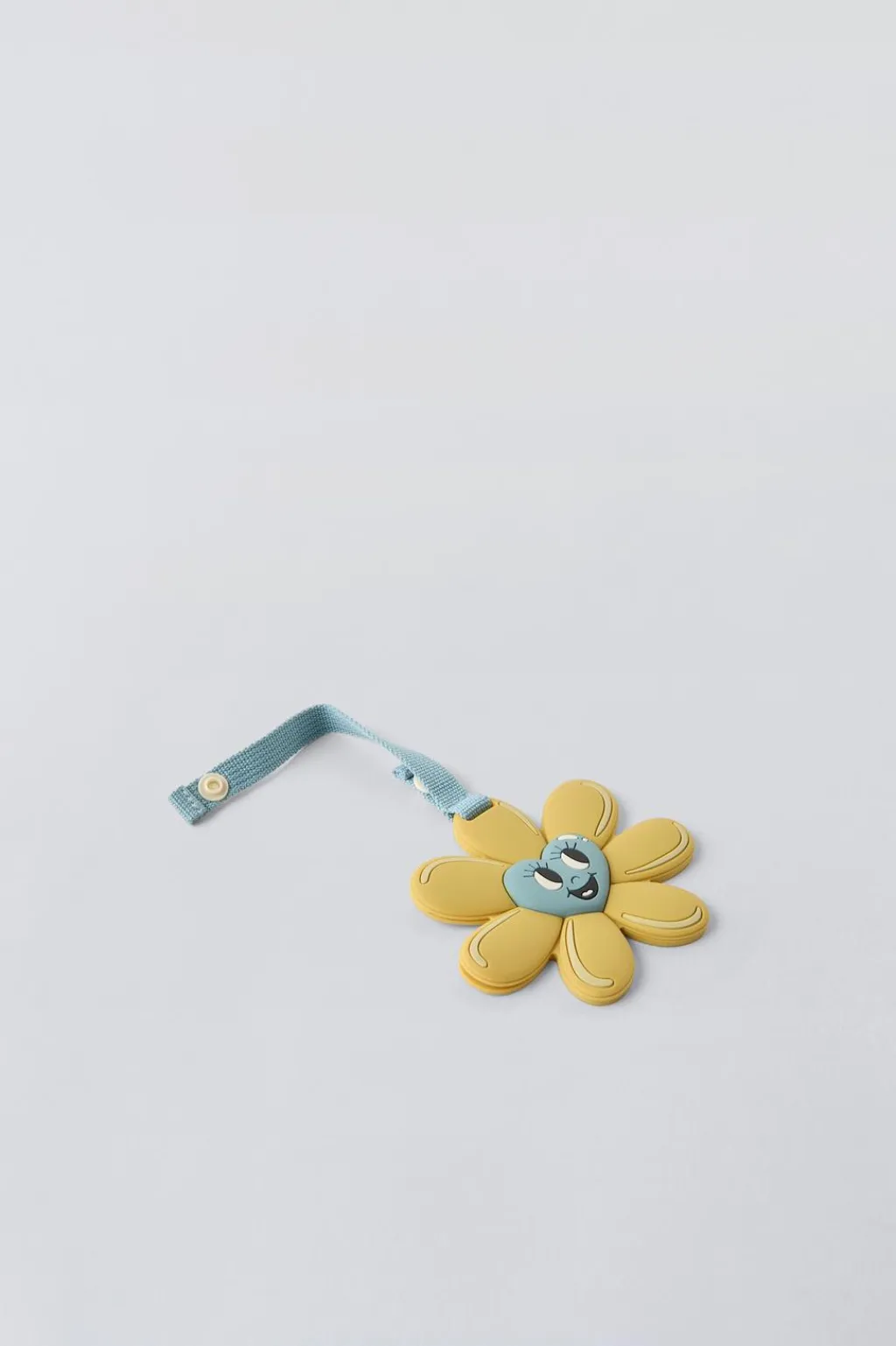 Identificador en forma de flor. En la parte trasera dispone de un espacio para rellenar datos. Tira con cierre mediante clip.