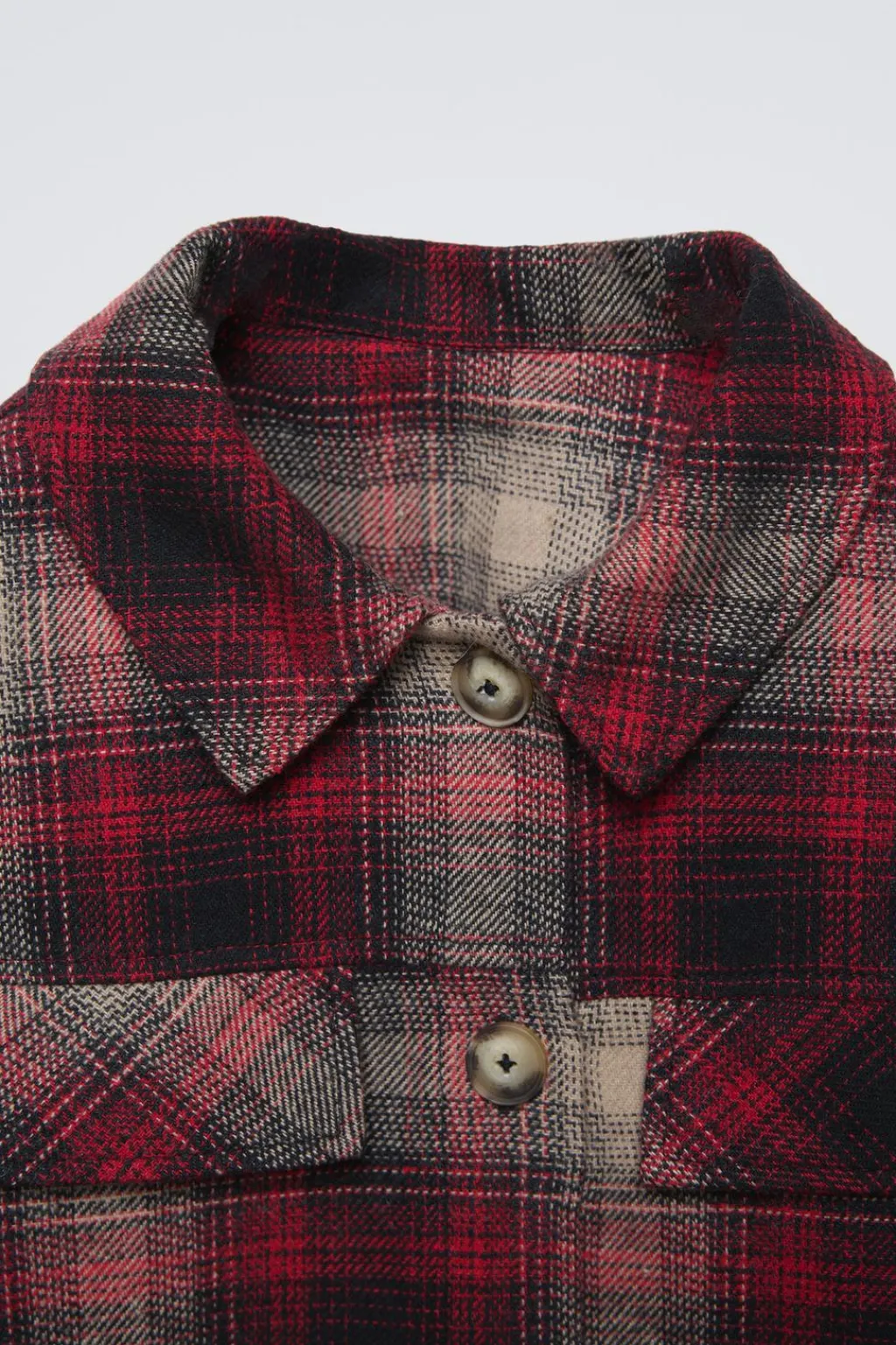 Sobrecamisa con cuello camisero y manga larga. Cierre botonadura frontal. Falsos bolsillos con tapeta en pechera. Estampado cuadros. Tejido calentito.