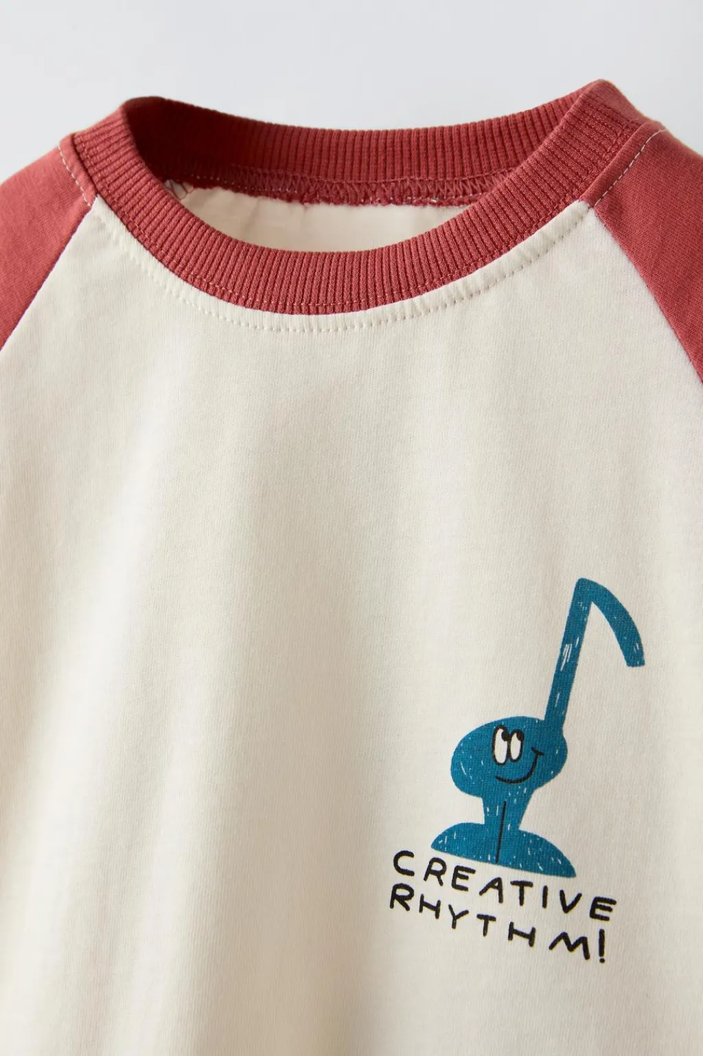 Camiseta con cuello redondo y manga corta a contraste. Estampado en pechera y espalda.