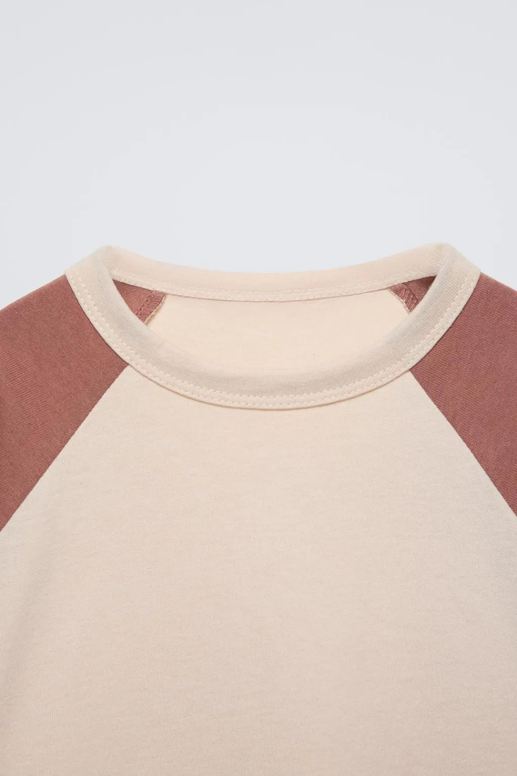 Camiseta con cuello redondo y manga larga con color a contraste.