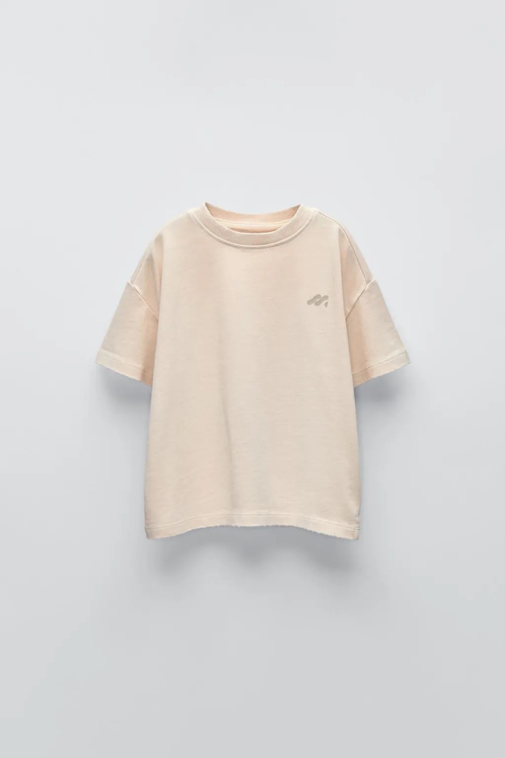 Camiseta con cuello redondo y manga corta. Detalle bordado en pechera. Acabados con efecto roto.