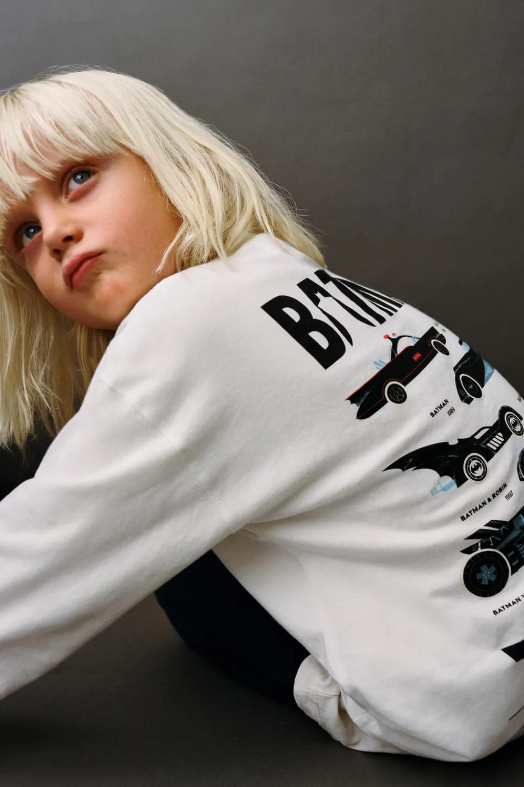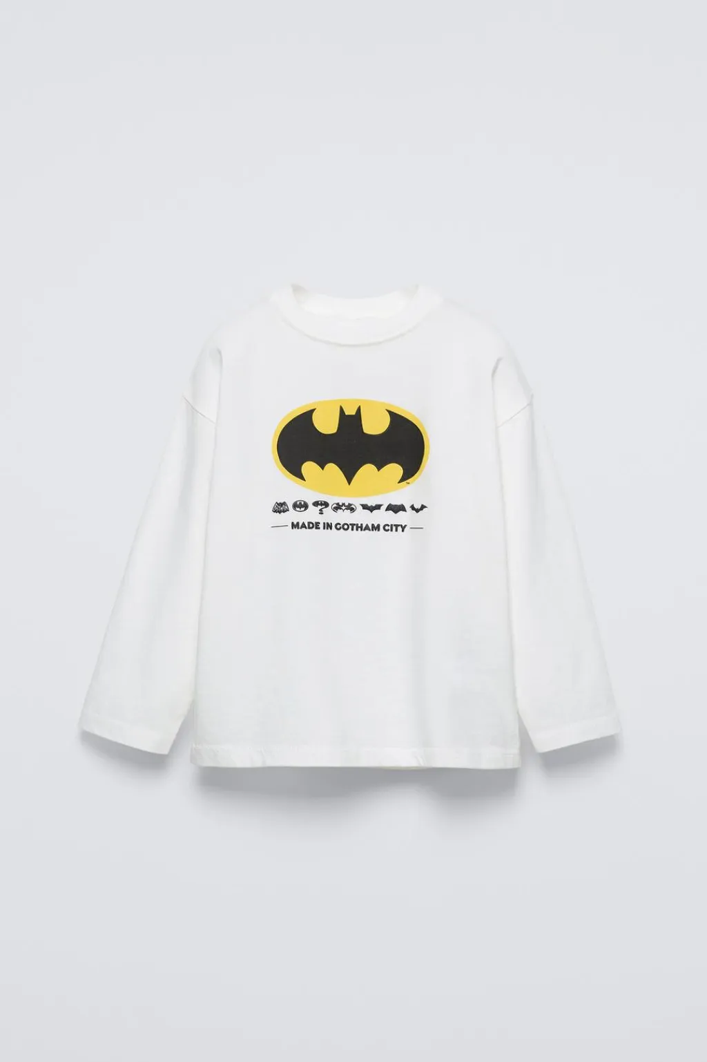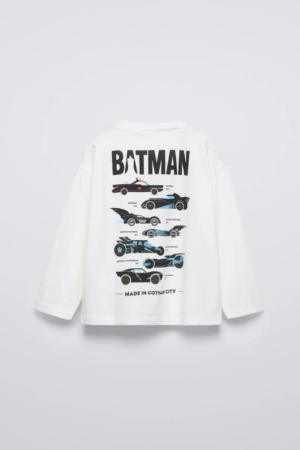 Camiseta con cuello redondo y manga larga. Estampado de BATMAN © & ™ DC COMICS© en delantero y espalda. Detalle texto en relieve en frontal.