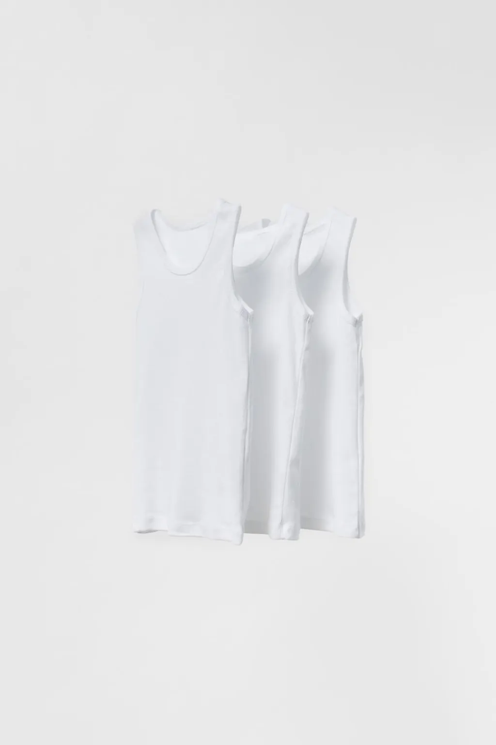 Pack de tres camisetas básicas cuello redondo y sin mangas.